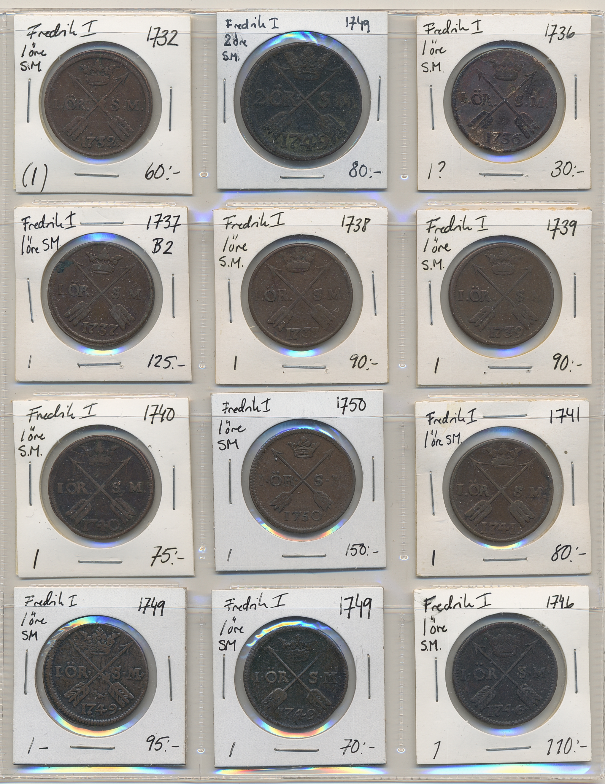 Coins, Sweden. Fredrik I, 52 pcs of copper and silver coins. Please inspect! .