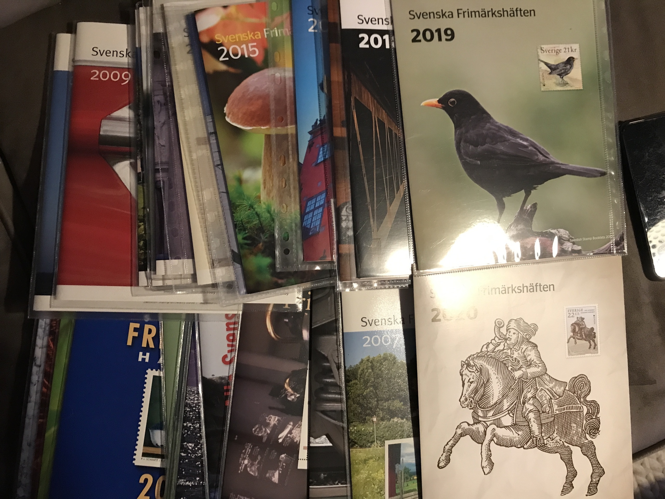 Sweden. Year sets. 32 different booklet year sets cpl. 1989–2020. Face value approx. 31000 ('Sverige BREV' = 18:-/st). Approx. 5 kg.