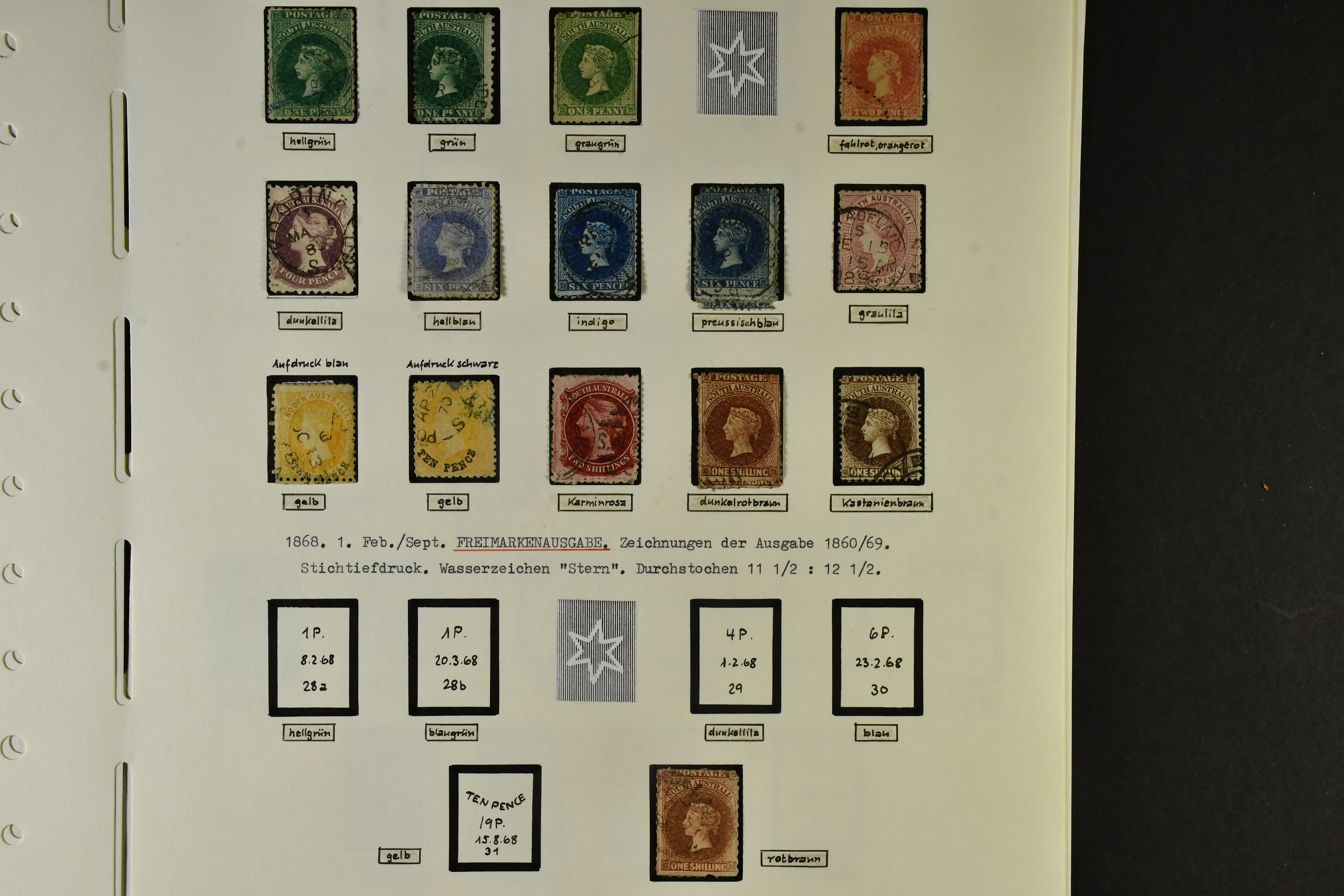 Australia, South Australia. Collection used on home made leaves. Several better values. The entire lot is presented at www.philea.se. Mostly fine quality.