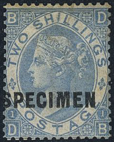 Britain. Michel 34 ★★, 1867 Queen Victoria wmk Spray of Rose 2s. dull blue, watermark Spray of Rose. With SPECIMEN overprint. EUR 400
