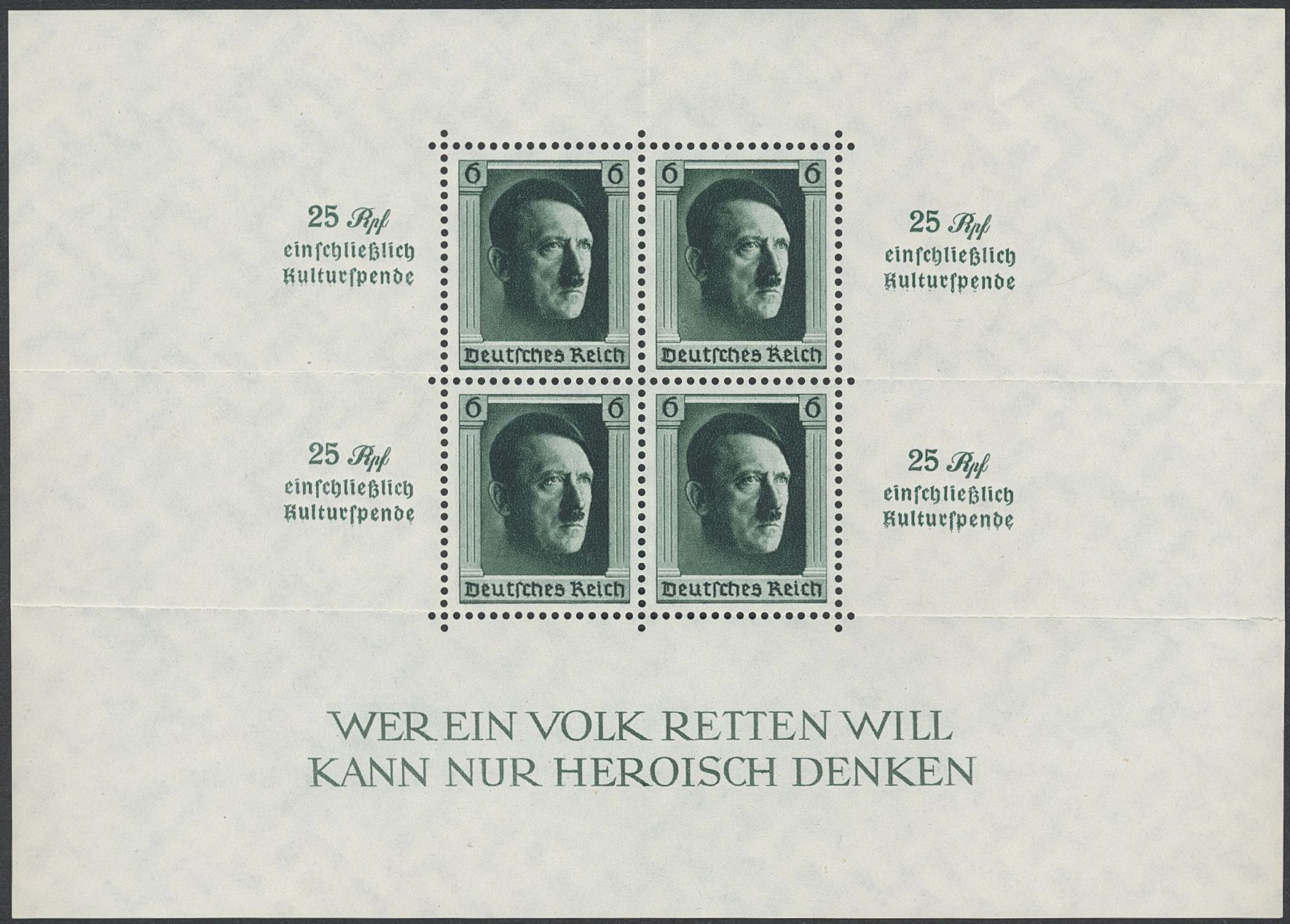 Germany, Reich. Michel 648 ★★, 1937 Culture souvenir sheet 9 (1). EUR 330