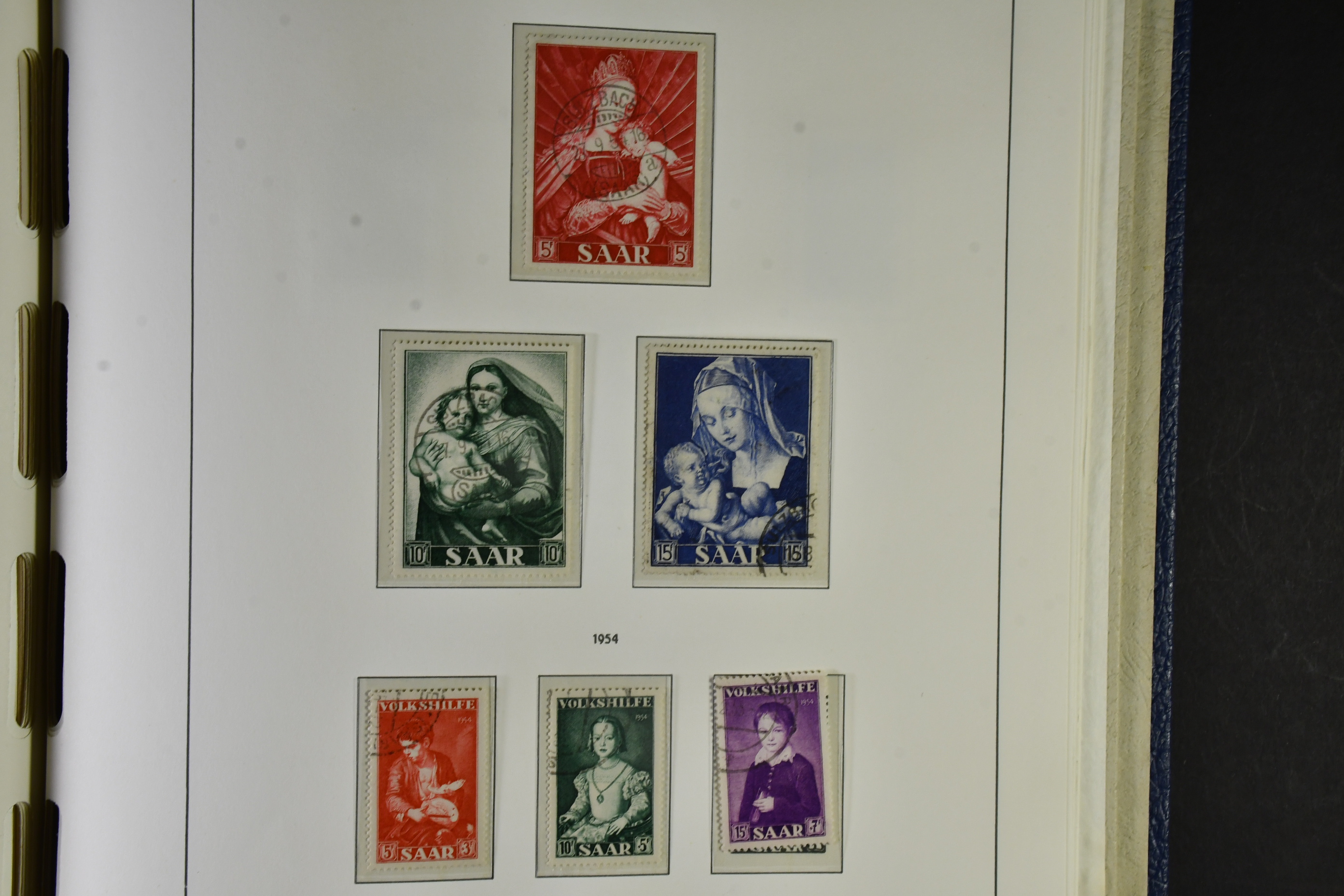 Germany, mixed. Used. Allied Occupations through to Saar housed in lighthouse album, all postally used, beginning with numeral types for all zones, particularly the single band posthorn o/ps and the all over posthorn o/ps of 1948. Then the castle issues, various better commems, useful French Zone, i.e. Baden, Rheinland-Pfalz and of course Wurttemberg inc a good range of missing denominations, on to the Russian Zone of 1945, specifically imperf numerals, useful Saxony, Thueringen bridges, both the Goethe and the Hannover m/s superb used, etc. Finally, Saar, again all postally used, much from 1954 onwards inc both sets of Heuss. A well balanced collection, particularly good to see postally used in good quality, offered intact as received.