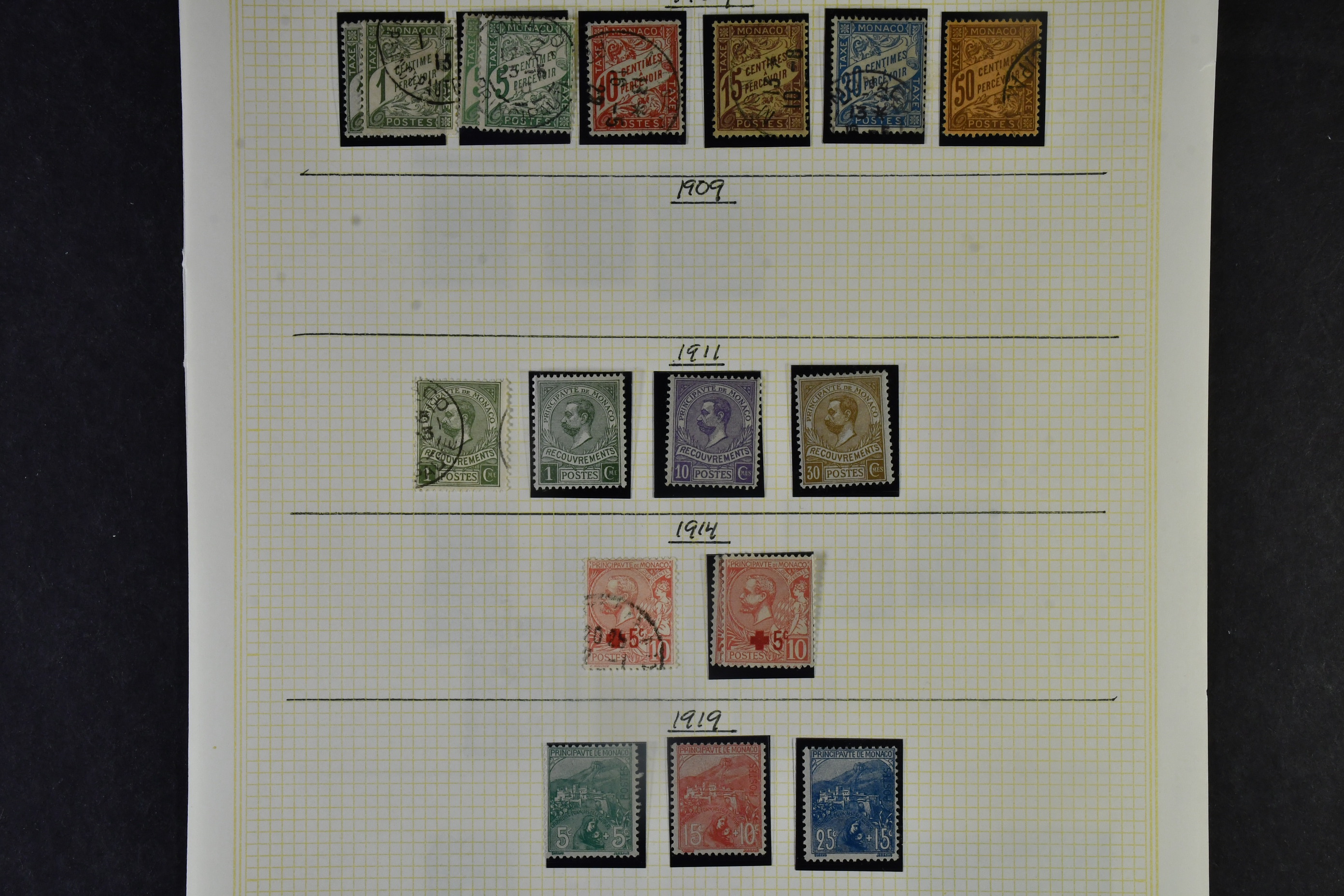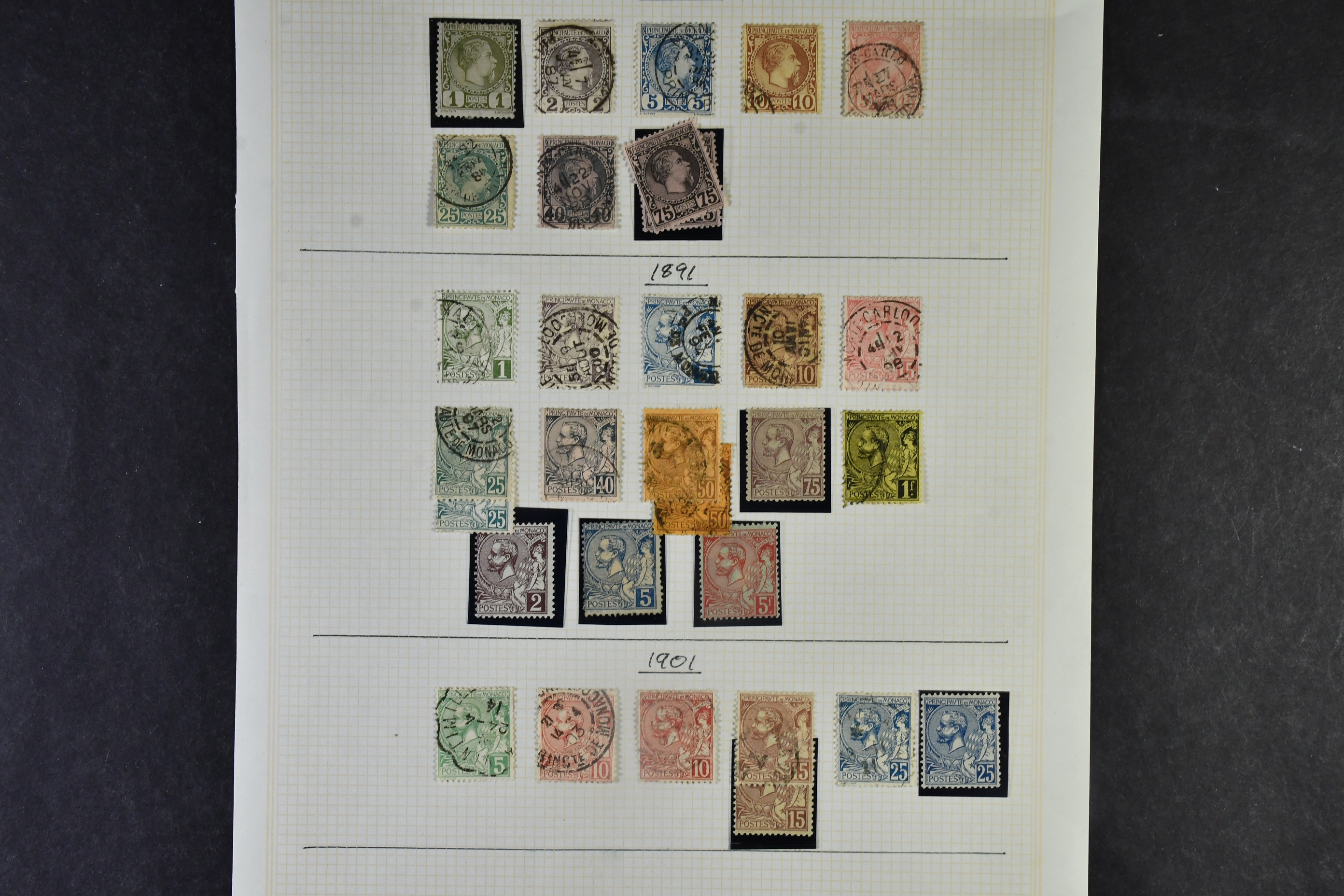 Monaco. Collection ★★/★/⊙ 1875–1970 on leaves. Good older material, both mint and cancelled. Well organized .Please see a selection of scans at www.philea.se. Mostly fine quality. (>500)