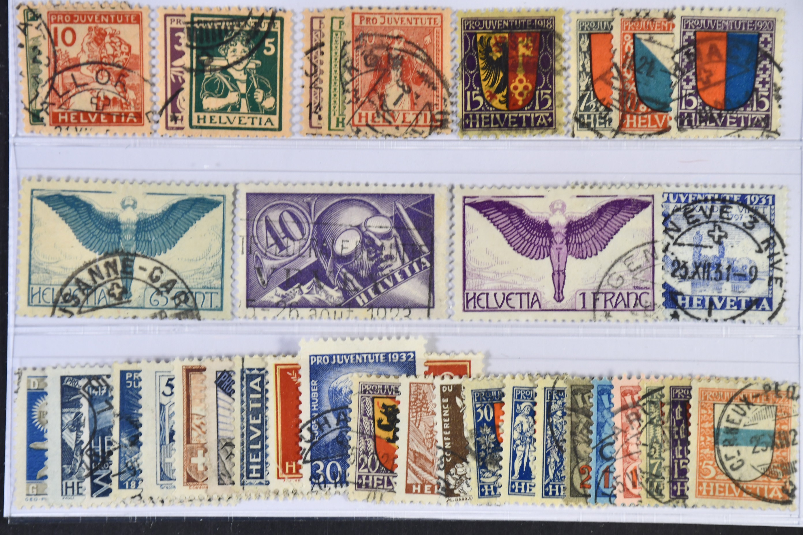 Switzerland. Used 1915–1932. All different, e.g. Mi 128–31, 133–35, 143, 153–55, 182, 189x, 191x, 249. Mostly good quality. Mi € 671 (37)