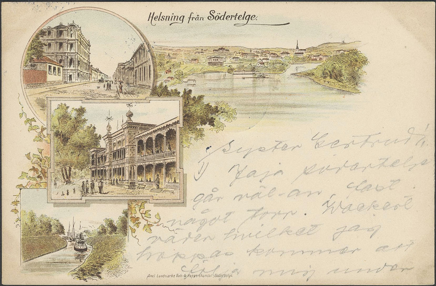Sweden. Facit 52 on picture postcard, Gruss Aus. Södertelge, "Helsning från", used card sent from SÖDERTELJE 23.8.1901 to STOCKHOLM 5.TUR 23.8.1901.