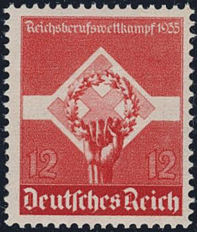 Germany, Reich. Michel 572y ★★, 1935 Sports 12 pf red horizontal gum rippling. Signed Schlegel BPP. EUR 160