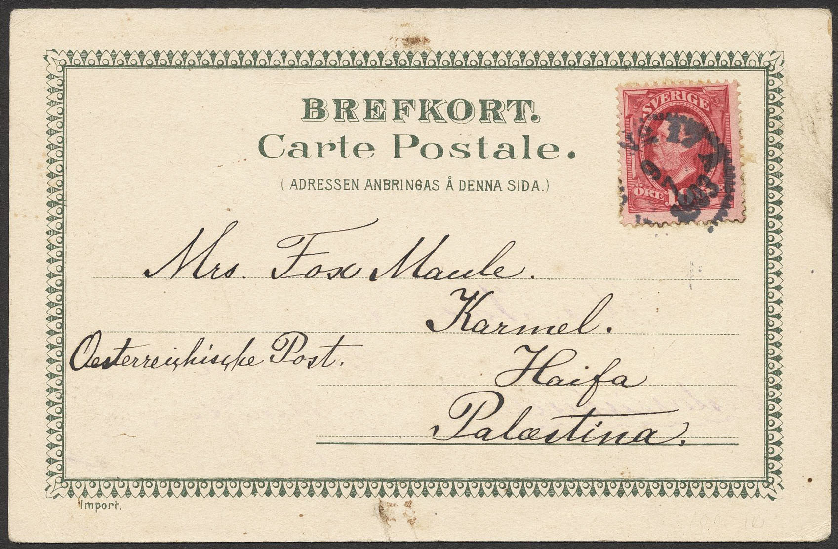 Sweden. Collection covers OSCAR II on visir leaves. Selected better usages incl. many postcards to better destinations, cards with glued envelopes on reverse, correctly franked with 10 öre corresponding to letter postage, postage due, etc. The entire lot is presented at www.philea.se. Somewhat mixed quality. (15)
