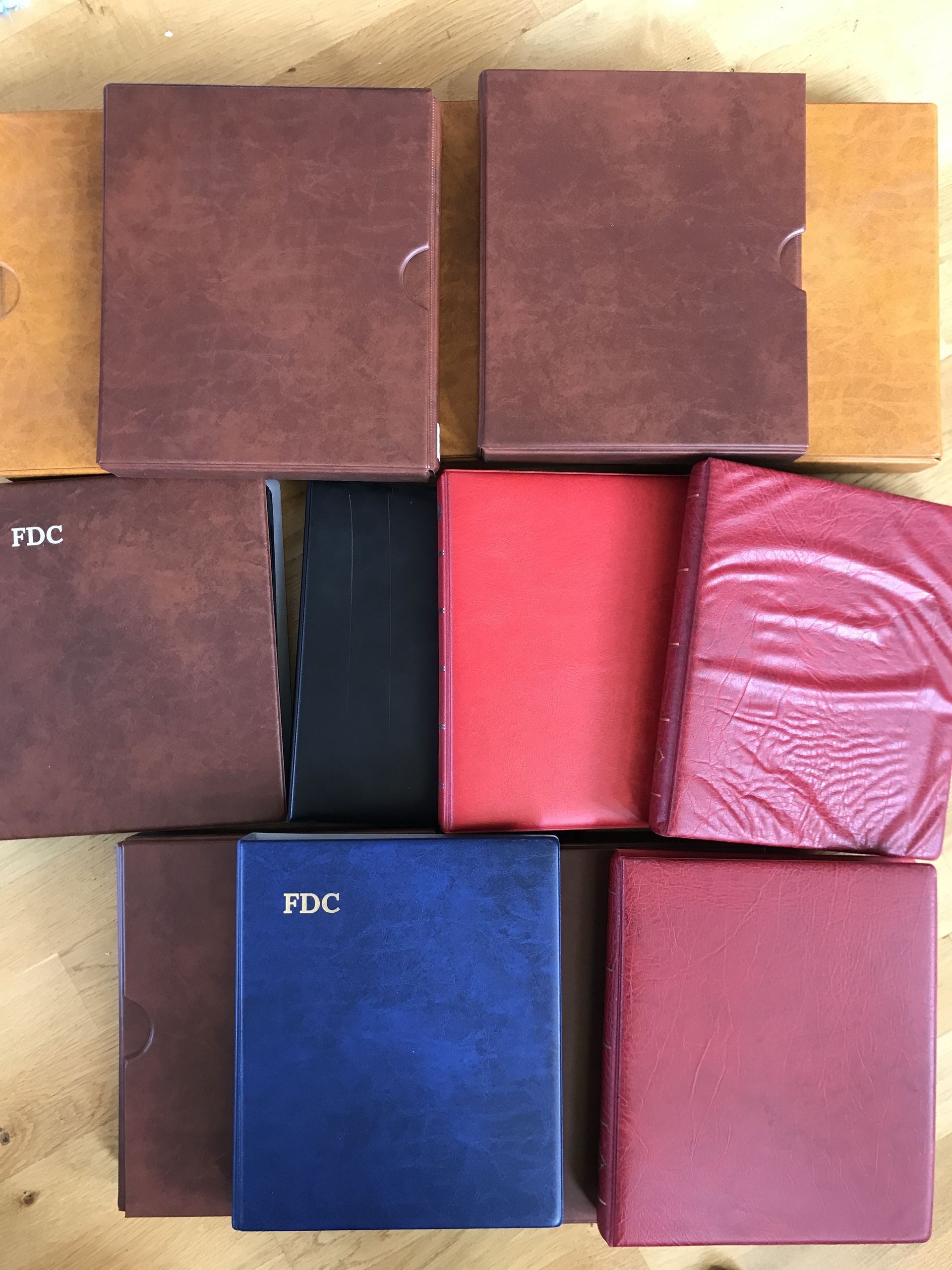 Denmark. FDCs. Seven binders with FDCs Greenland 1985–2003 incl. many with blocks-of-four and six binders Faroes 1975–2004. Approx. 21 kg.
