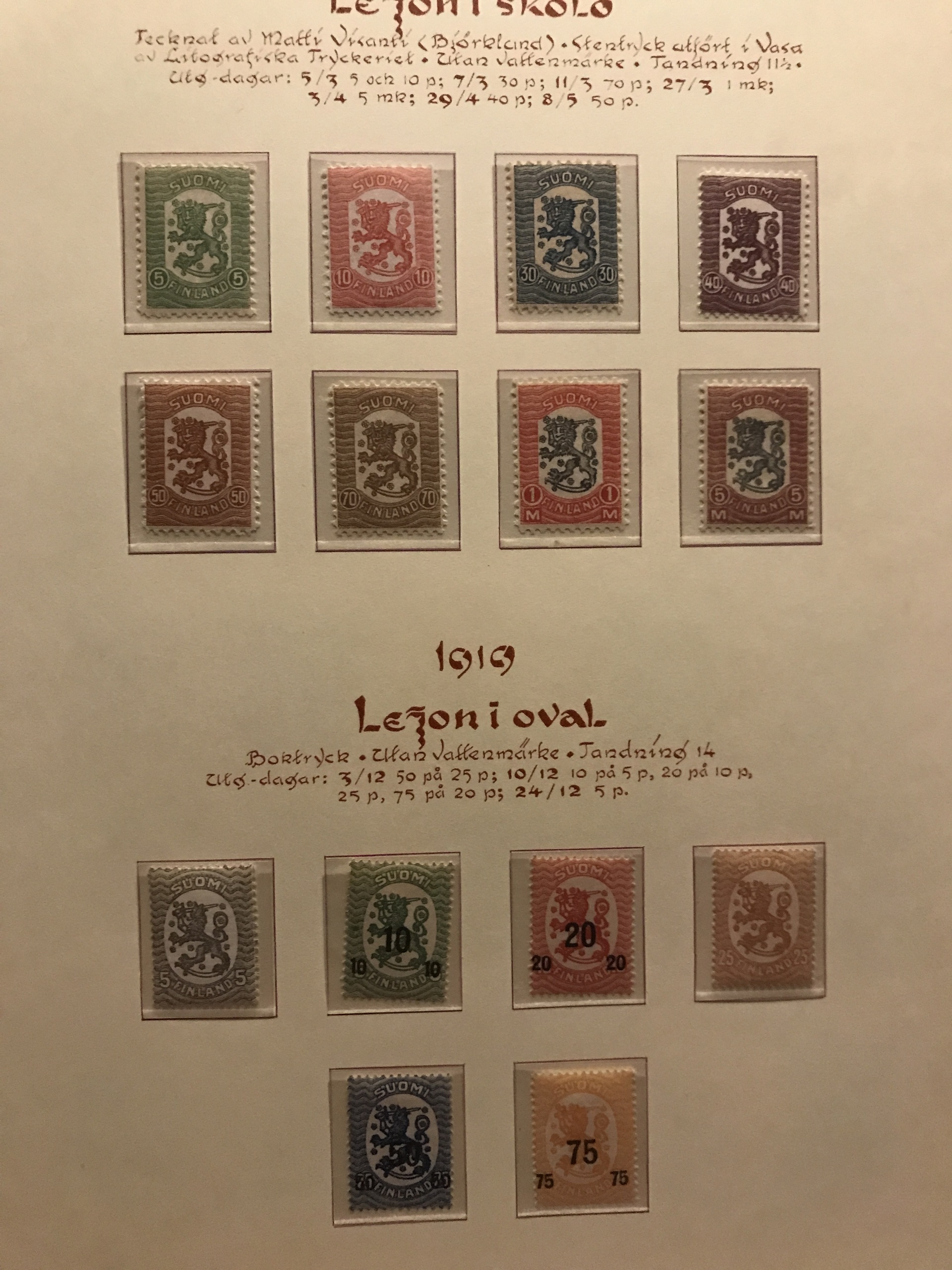 Finland. ★★/★. Collection 1875–2000 in four Estett albums incl. good four-numbered and nice Lion types, F33–47, 54 and 60–61*, F160I and 165**. Almost cpl. and mainly ** from 1931 incl. e.g. Field Post stamp 1963, parcel stamps and some occupied areas. Please see a selection of scans at www.philea.se. Approx. 7 kg.