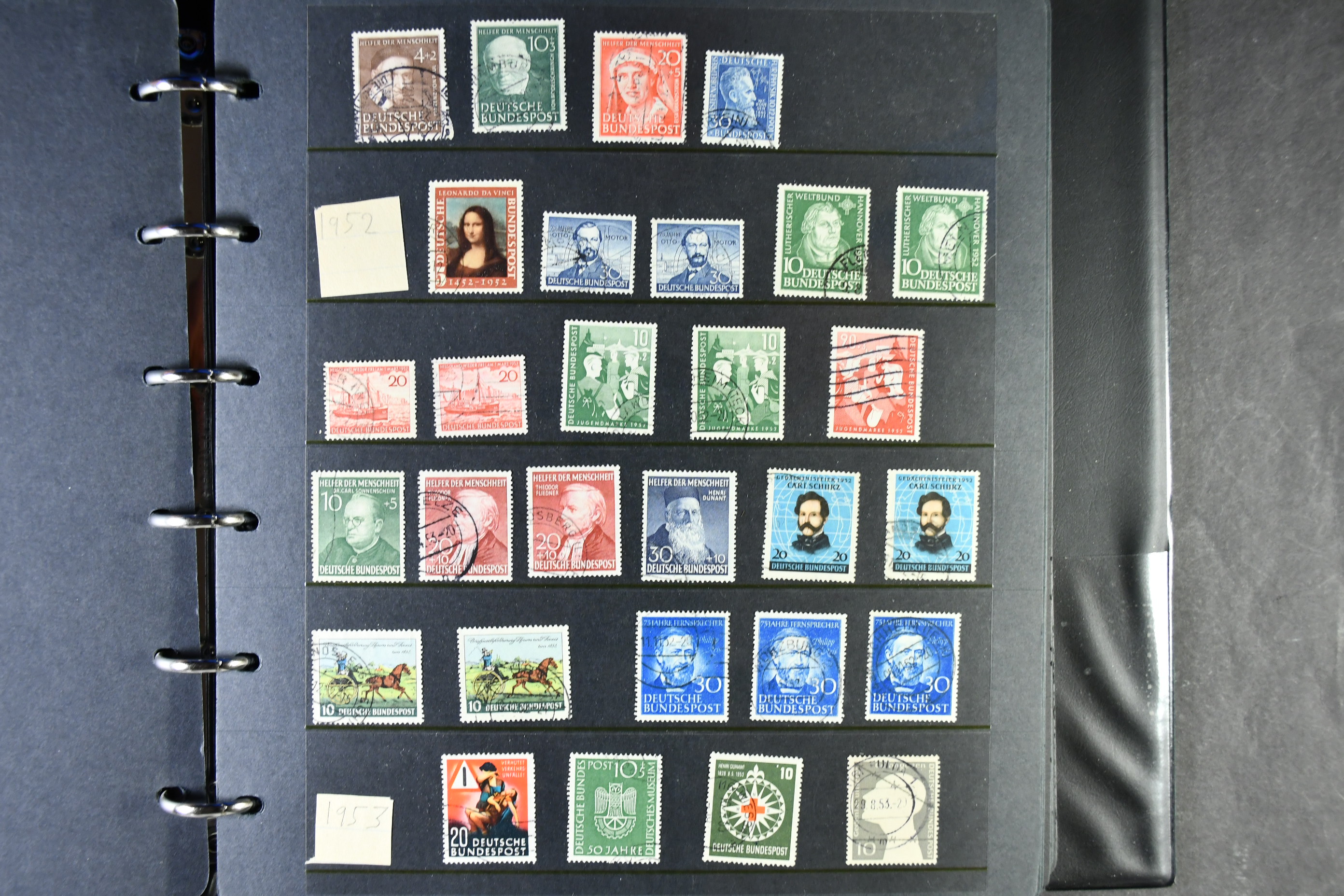 Germany, GFR (BRD). Collection used 1949–1984 in two albums. Early material (until 1955) quite well represented. Some parts of the collection can be considered as a stock material, due to stamps in multiplicate. Please see a selection of scans at www.philea.se. Fine quality. (>700)