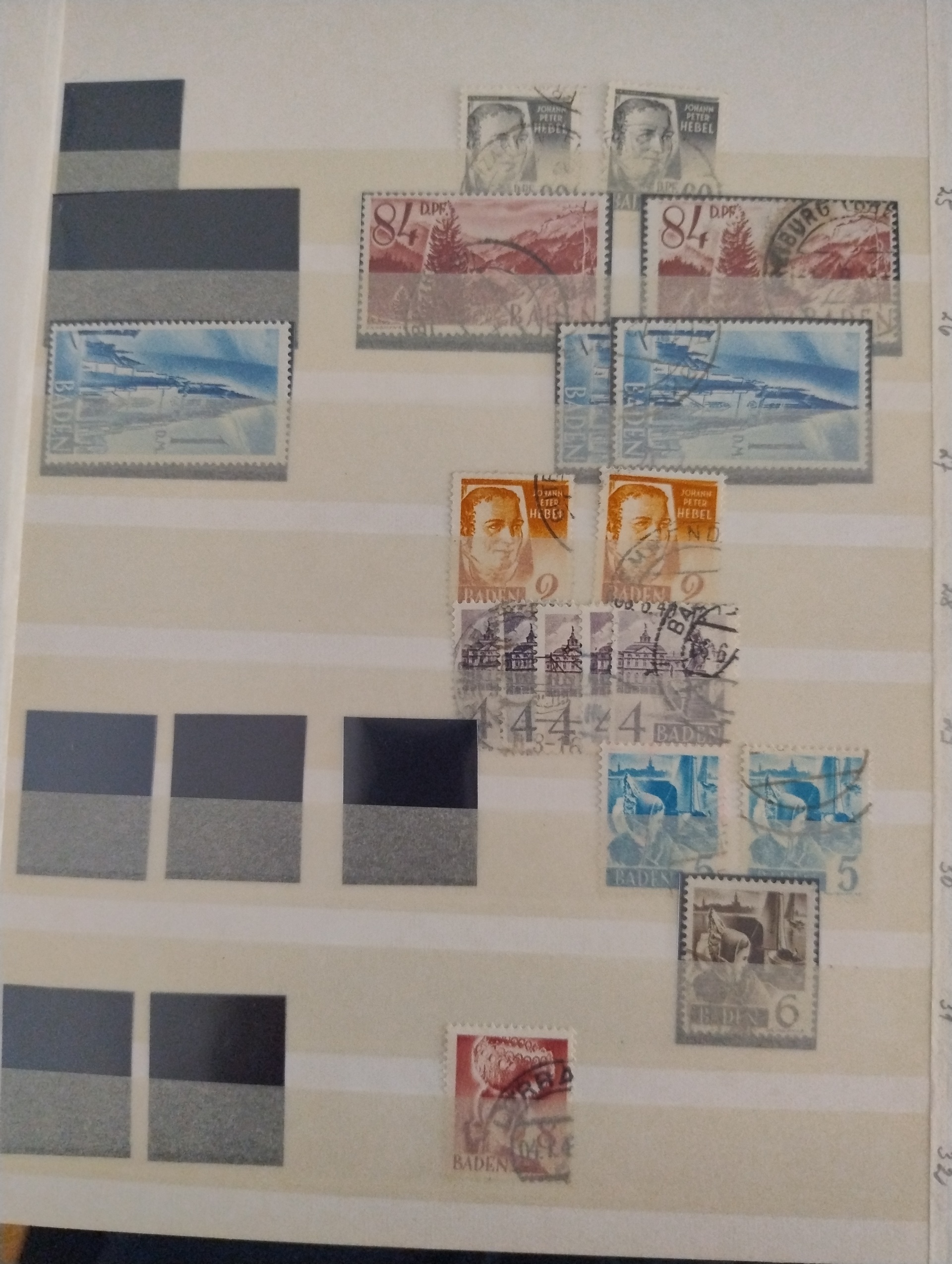 Germany, mixed. Collection/accumulation ★★/★/⊙ 1849–1969 in box. Two thick Ka-Be albums with a collection 1872–1969 incl. GFR, GDR and Berlin, one old Shaubek album 1849–1945 incl. some states and one stockbook with accumulation French Zones. Please see a selection of scans at www.philea.se. Good quality. Approx. 8 kg. (1000s)