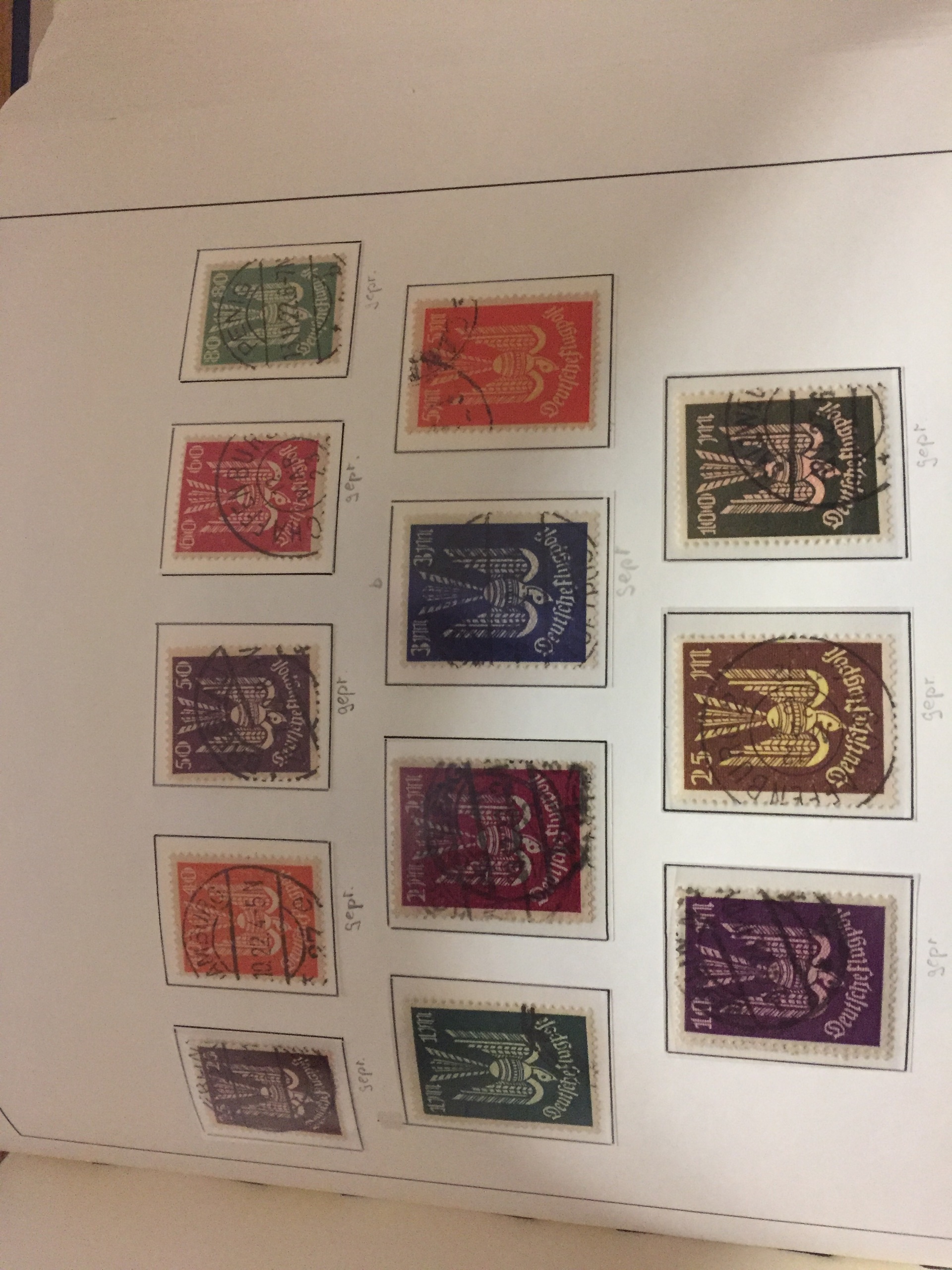 Germany, Reich. ★★/★/⊙. Specialized collection in two Leuchturm albums without the most expensive, but with many better stamps, s/s and some covers. Also many stamps with certificates or infla Berlin signs. E.g. Michel 37d, 103c *, 106c **, 22d **, 343 **, 384, 407–09, 572y, 684 *. Somewhat mixed quality. Approx. 6 kg.