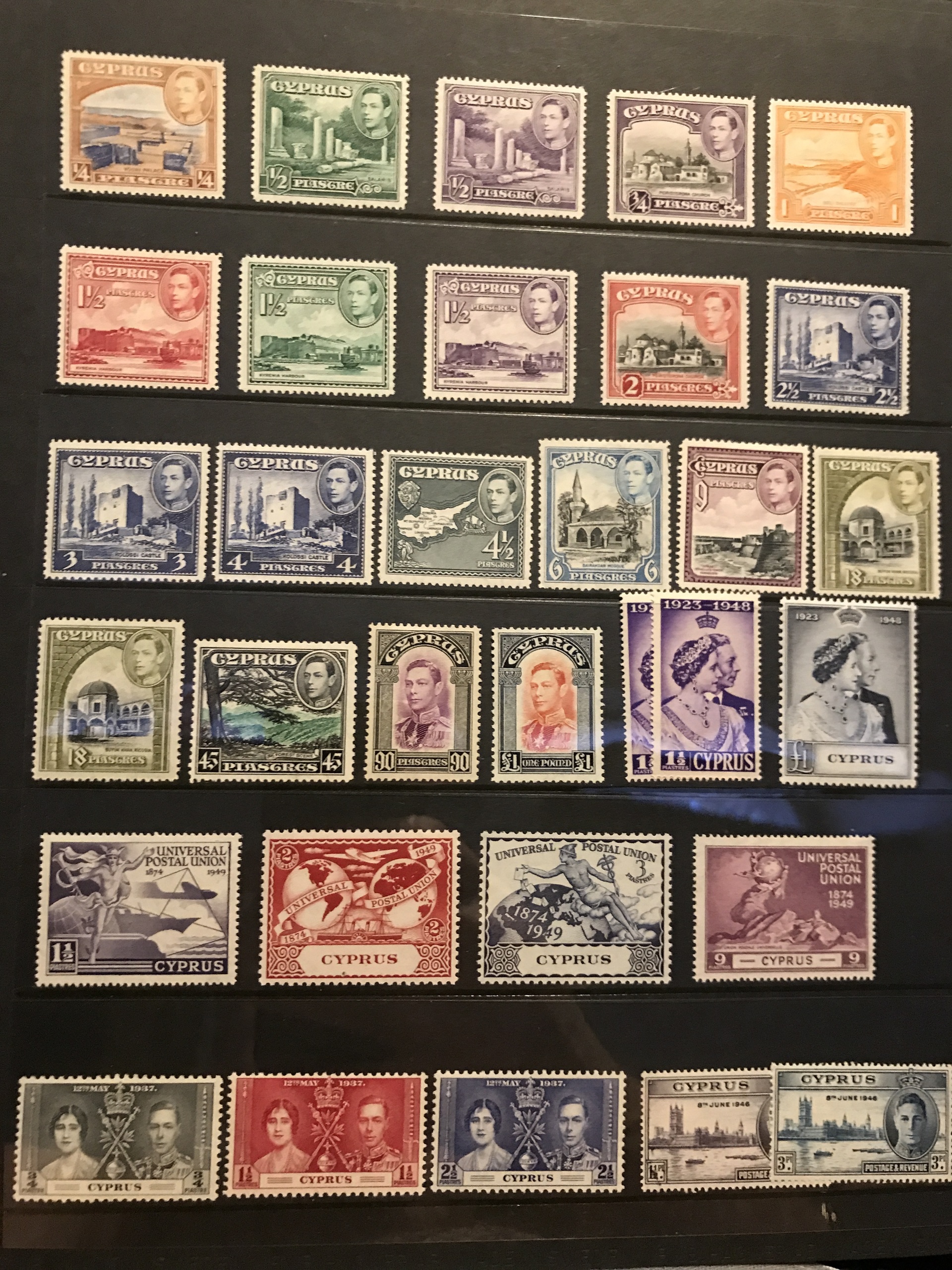 EUROPE. ★★/★. Lot with mostly Commonwealth on Visir leaves. Mainly 1937–50 incl. e.g. Cyprus Mi136–54 */**, Gibraltar Mi107–17 ** + different perforations **/*, better Britain and Malta, some back-of-the-book, etc. Please see a selection of scans at www.philea.se.