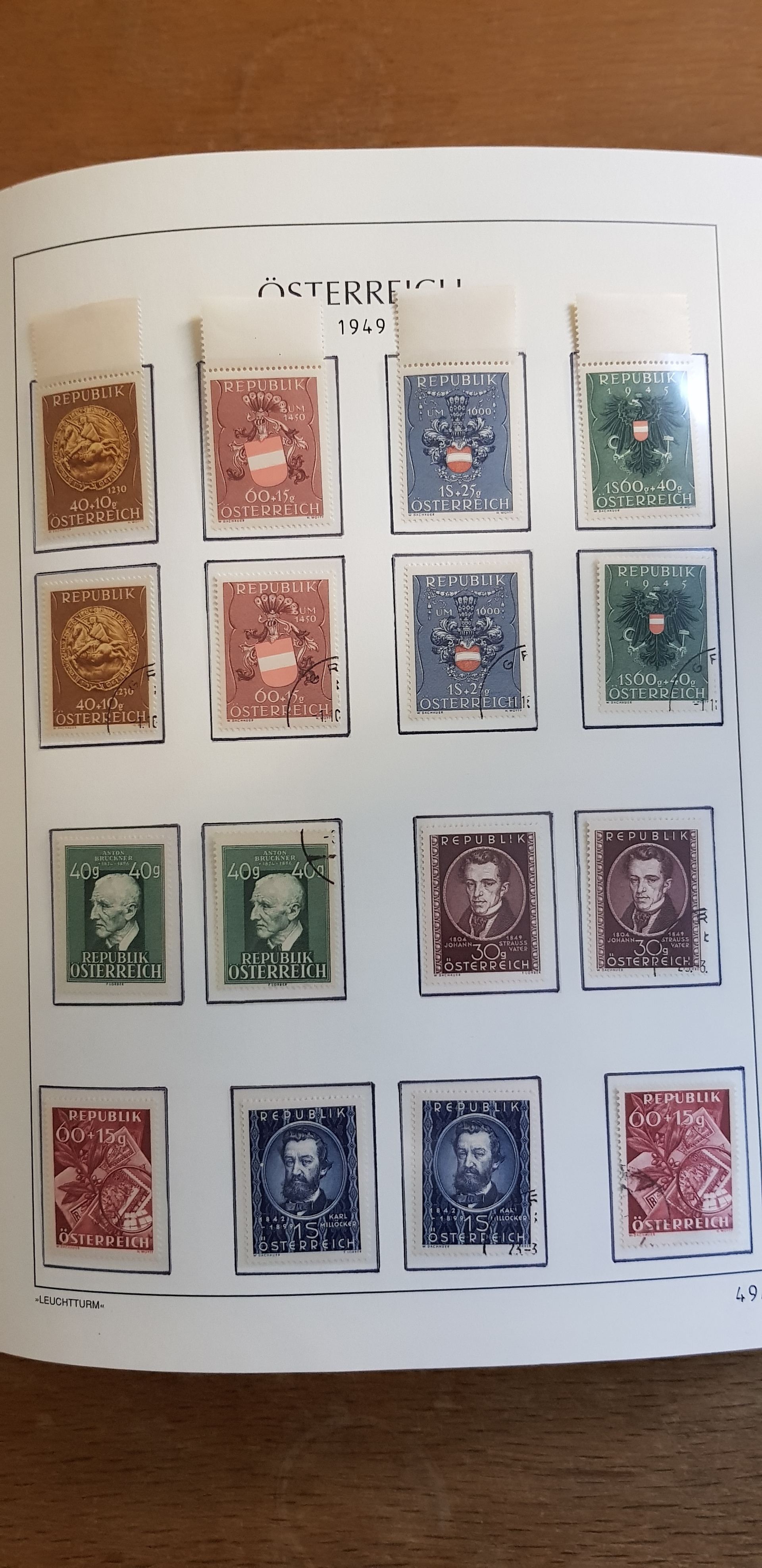 Austria. Collection/accumulation mostly ★★ 1945–2001 in box. An almost complete set of the second rebublic in three Leuchtturm albums incl. unused and used sets of stamps. High face value. Please see a selection of scans at www.philea.se. Fine quality. Approx. 9 kg. (>2000)