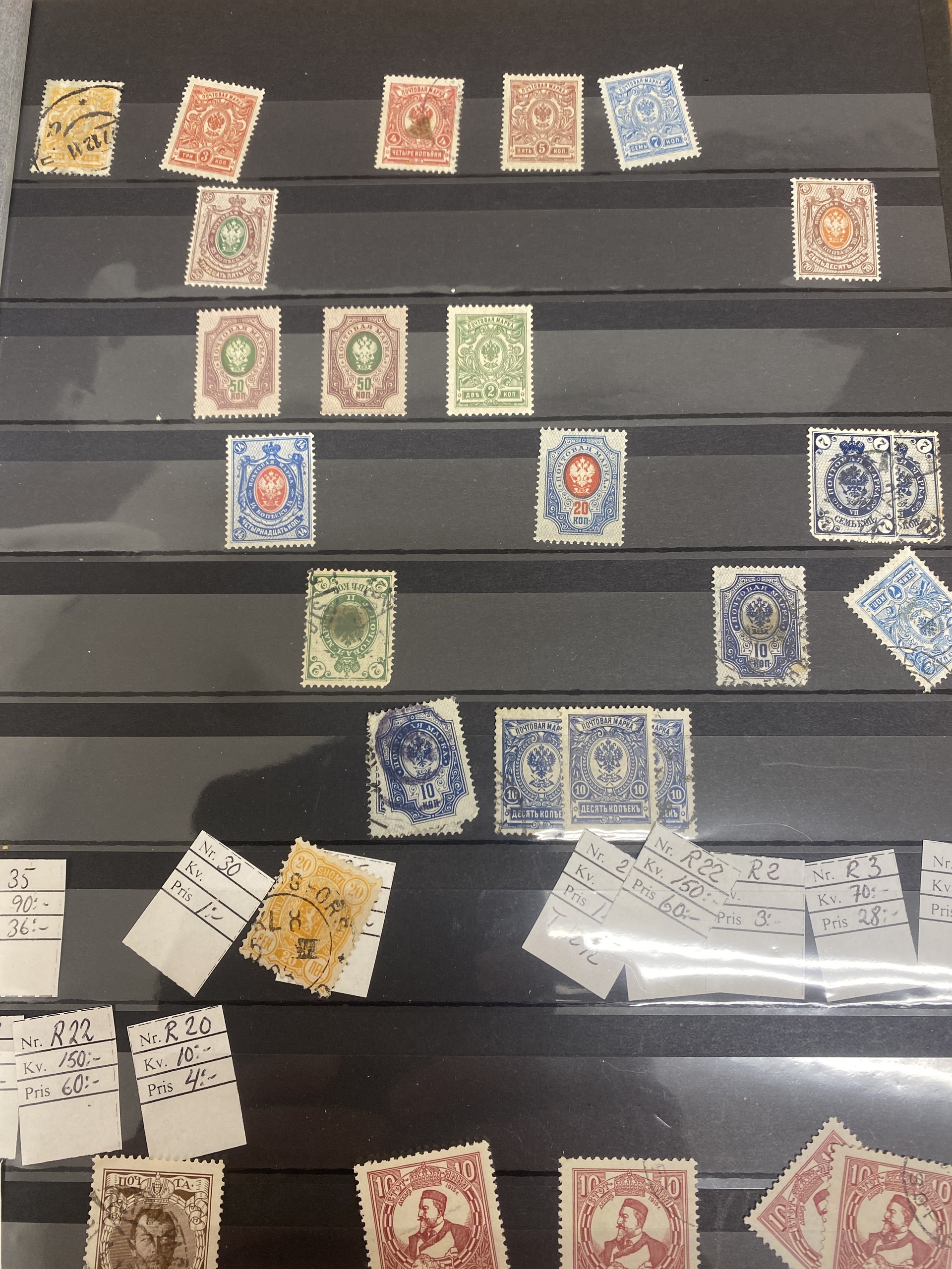 Russia, mixed. Collection mostly unused in album with stamp mounts. Six stockbooks with an emphasis on unstamped stamps as well as clippings and loose stamps from old to new. Fine quality. Approx. 10 kg. (2000)