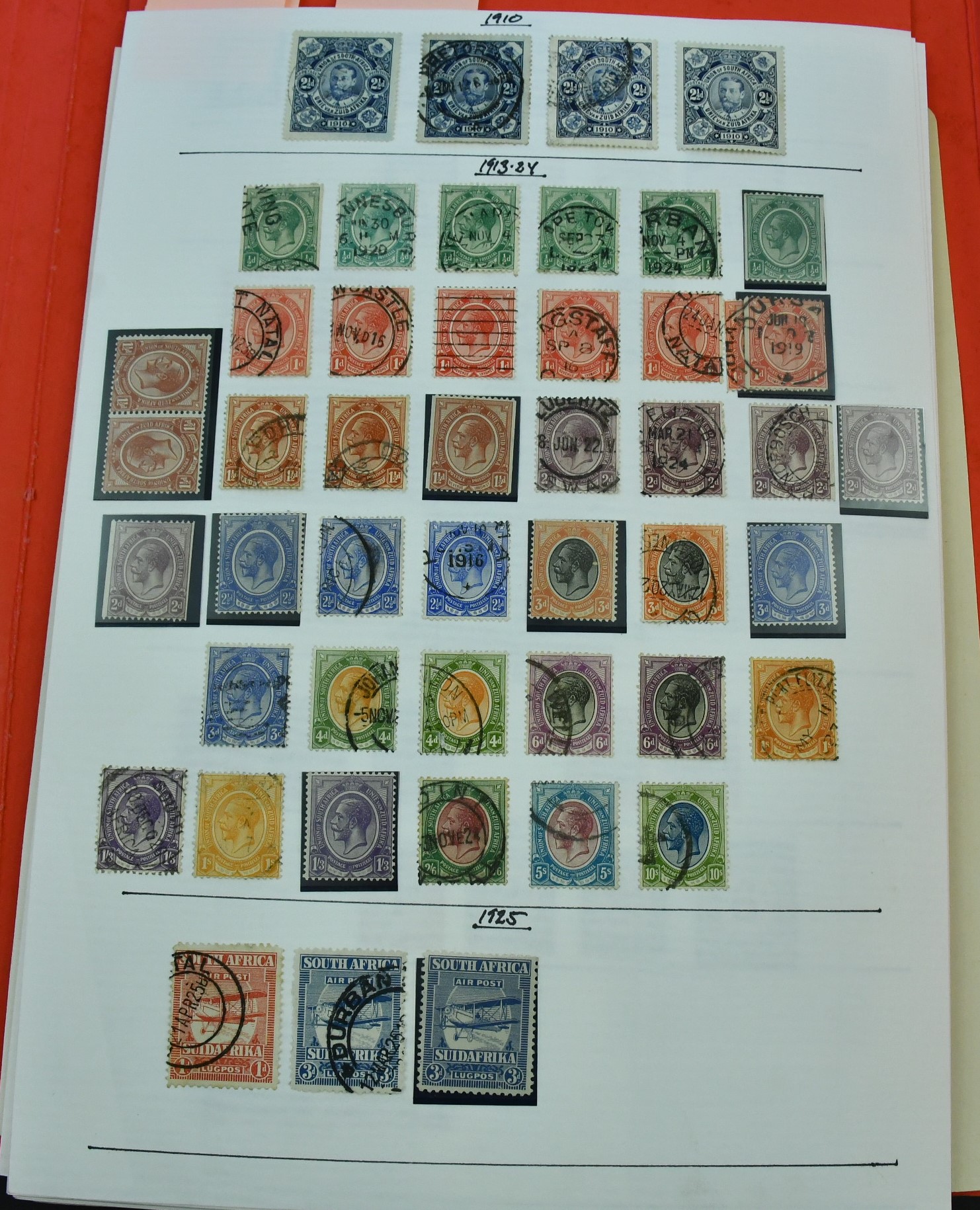 South Africa. Collection mostly used 1910–modern on leaves. Including some a bit better and high values up to 10s. Mostly fine quality.