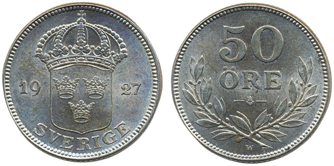 Coins, Sweden. Gustav V, MIS I.6, 50 öre 1927. 4.97 g. 01/0.