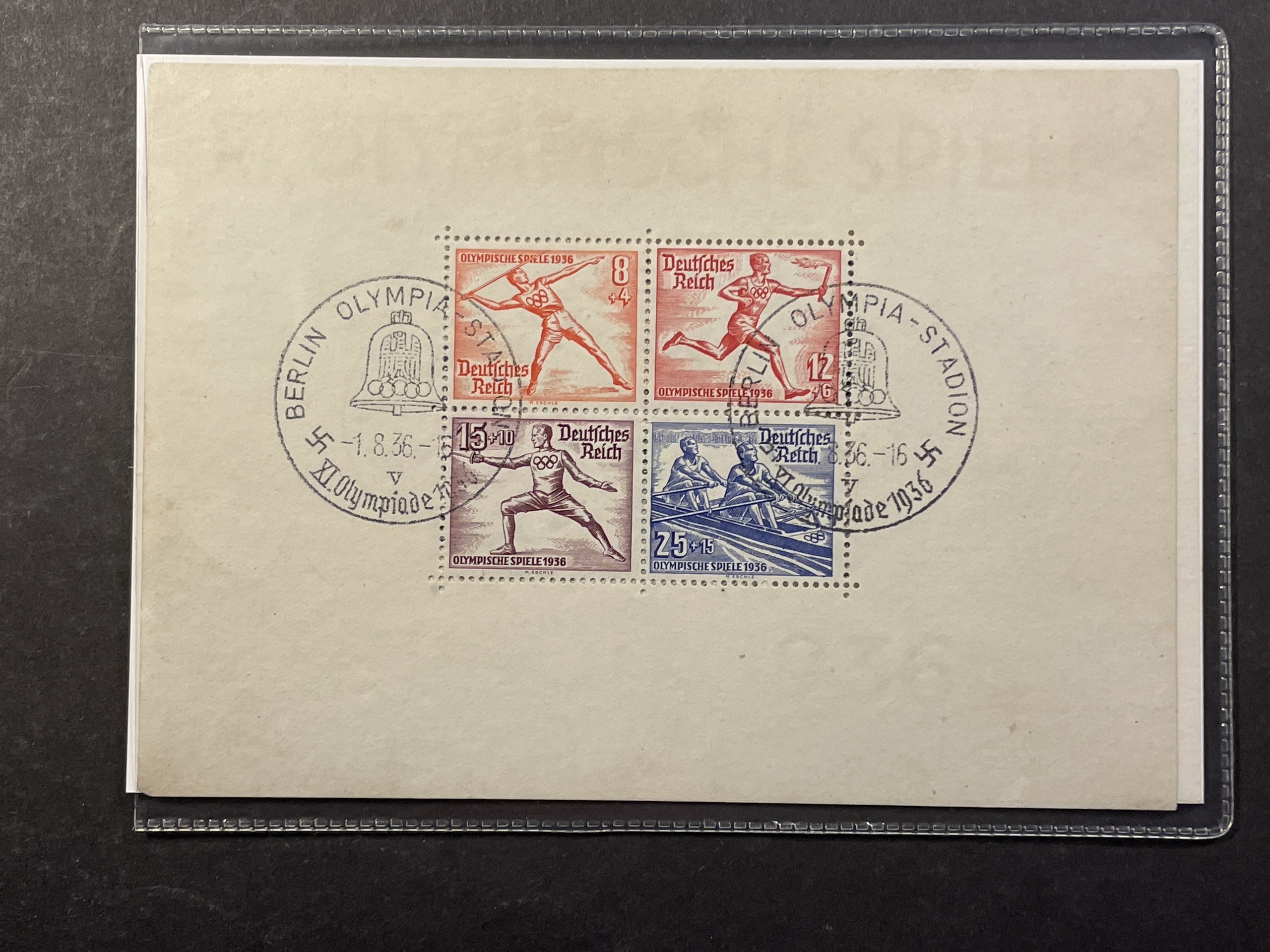 Germany, Reich. Michel 624–31 used, 1936 Olympic Games in Berlin souvenir sheet 5–6 (2). EUR 180