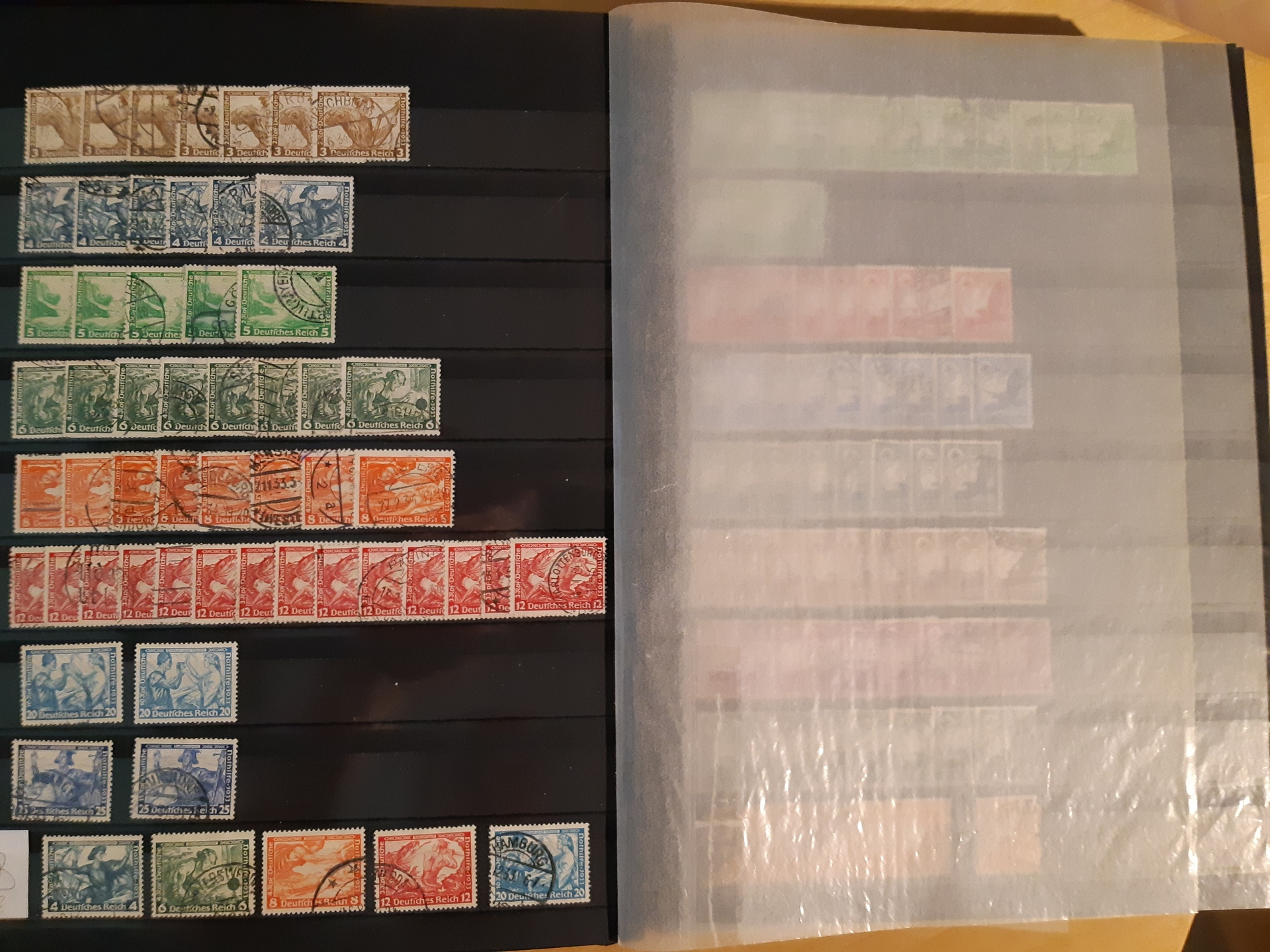 Germany, Reich. Collection used 1930s–1945 in large stockbook. Sorted duplicates incl. a few souvenir sheets. Favourable. Mostly good quality. (1500)