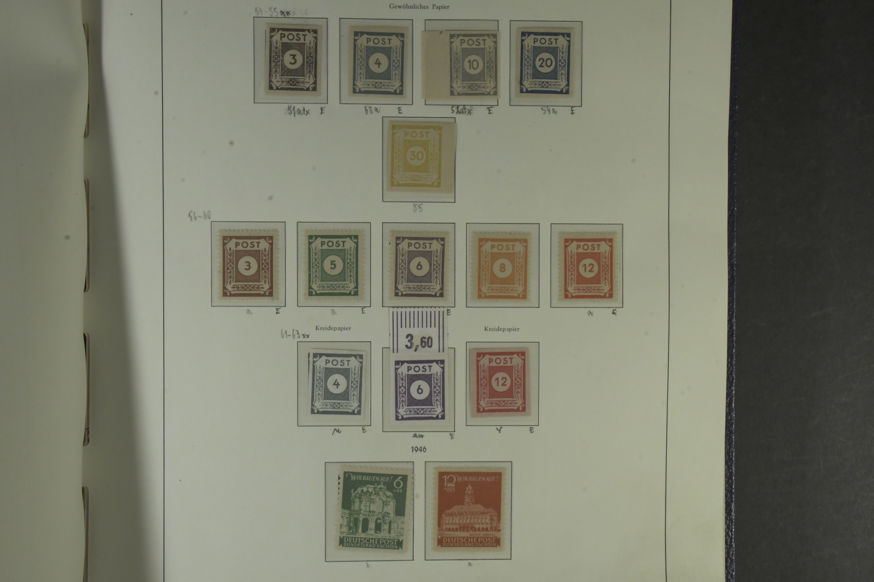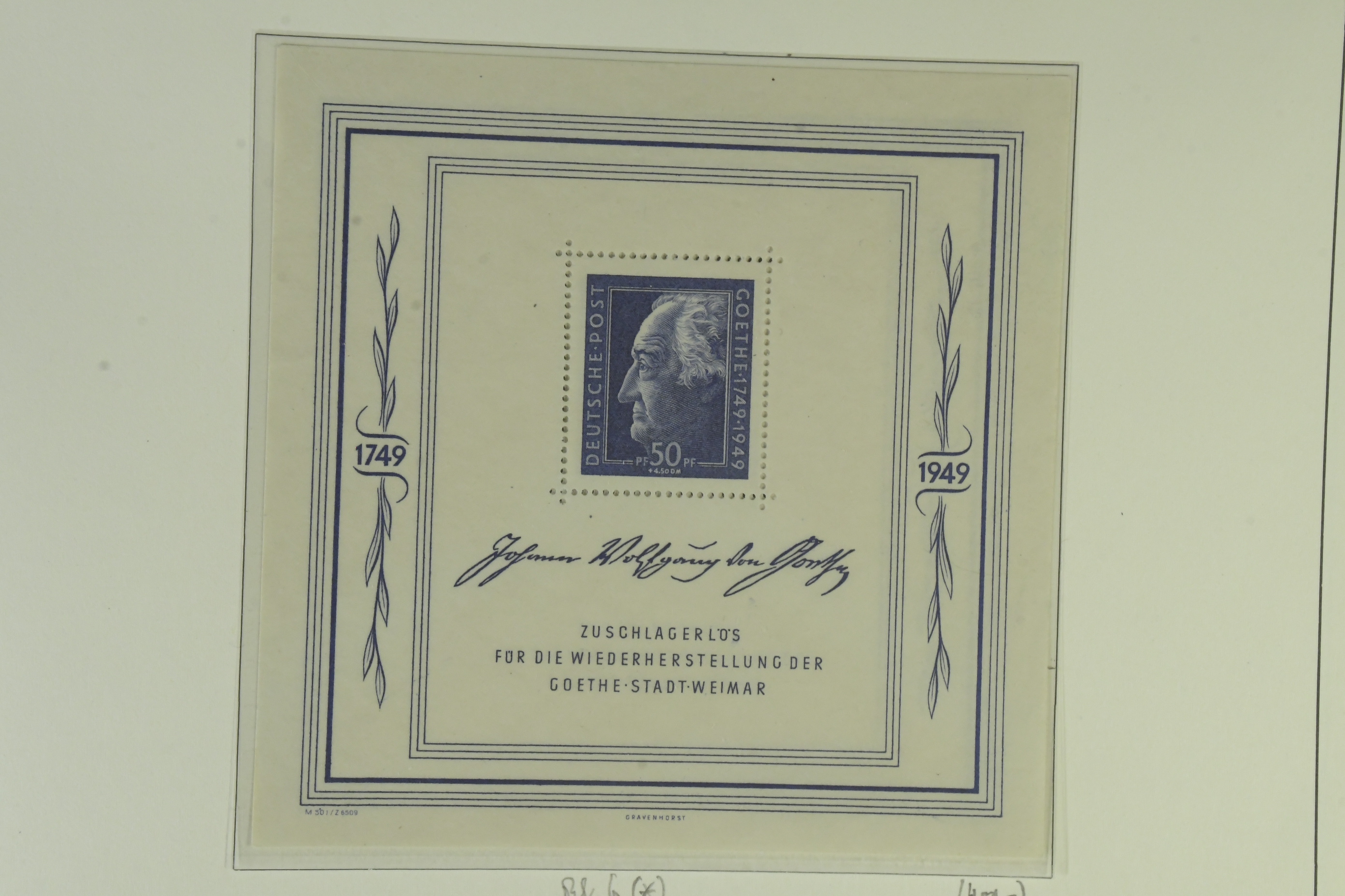 Germany, zones. Collection/accumulation ★★/★/⊙ 1945-49 in two albums. Common Zones, American/British Zone and , Russian Zones with pages for a collection part and many extra pages for duplicates in very good variation. Many better stamps, sets and s/s included, MANY SIGNED COPIES (they are partly noted with "E" on album pages), allover well classified with noes for catalouge numbers in many casees. A selevtion avaliable on the website but there is much more to be found, low reserve½. Fine quality.