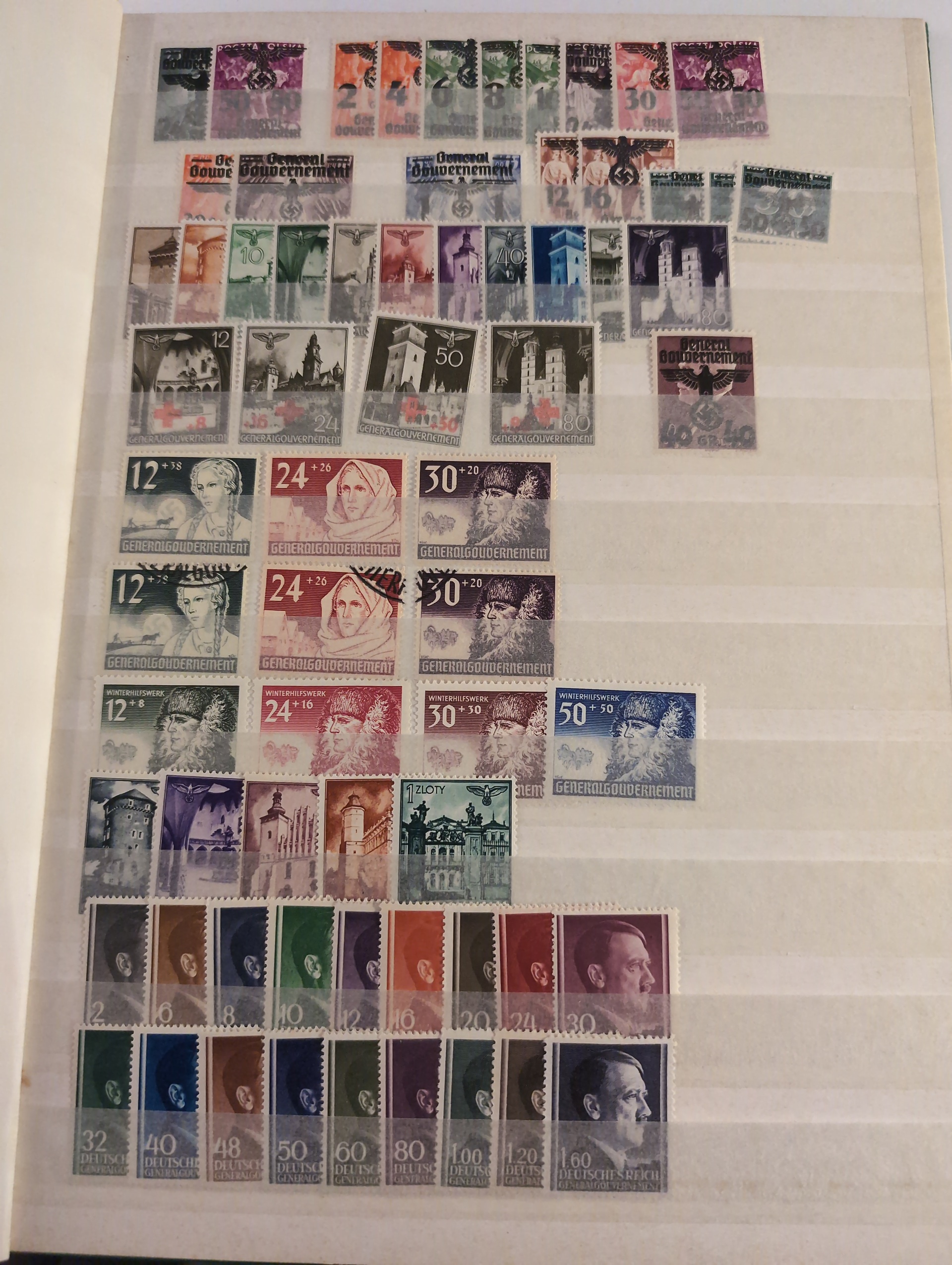 Germany, mixed. Accumulation ★★/★/⊙ 1920–1945 in box. Three stockbooks and one album. Extensive lot infla period incl. officials, areas incl. much General Government on old leaves. Reich 1939–1945 complete ** and used stock 1933–1945. Mostly fine quality. Approx. 6 kg. (many 1000s)