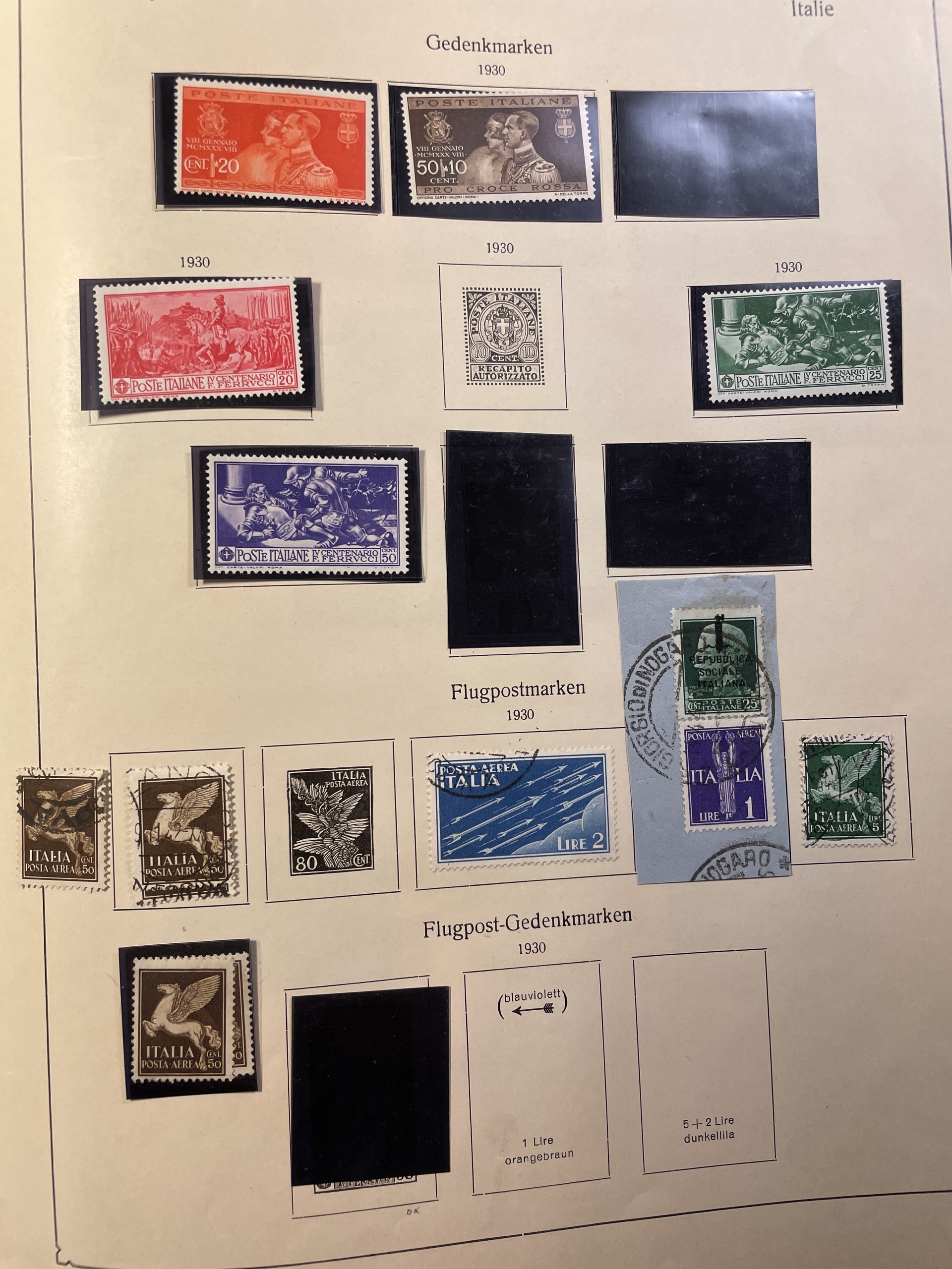 Italy. ★★/★/⊙ 1863–1942 in KABE album. Also stamps from "areas". Mostly good quality. (500)