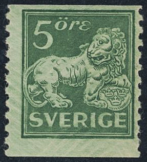 Sweden. Facit 140Acx ★★, 5 öre bluish green type I vertical perf 9¾ with vm lines. Fair centering. SEK 1800