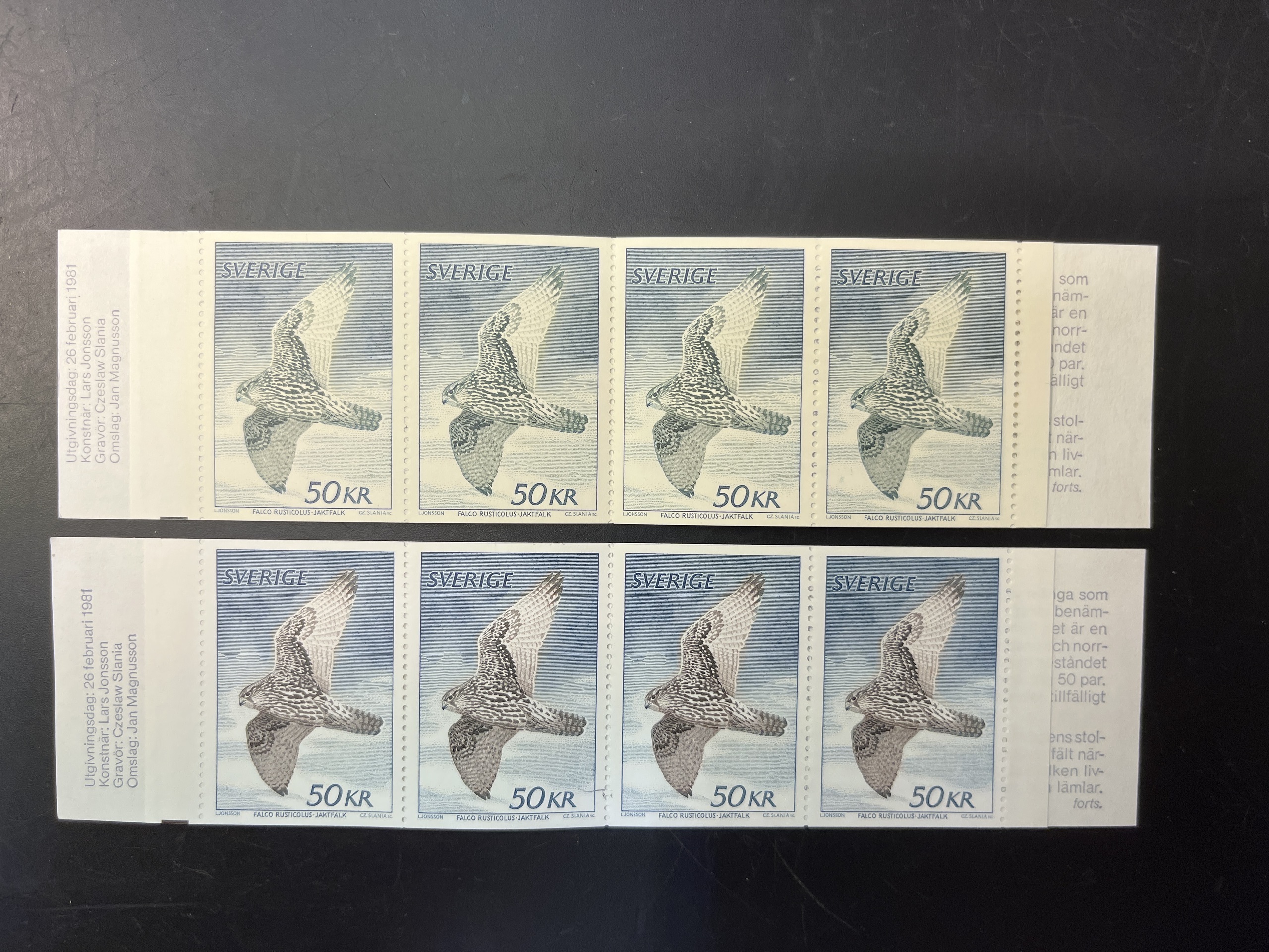 Sweden. Booklet Facit H329, 1981 Gyrfalcon 4 × 50 Kr. With one colour missing/proof print and and the front of the cover cross shredded.