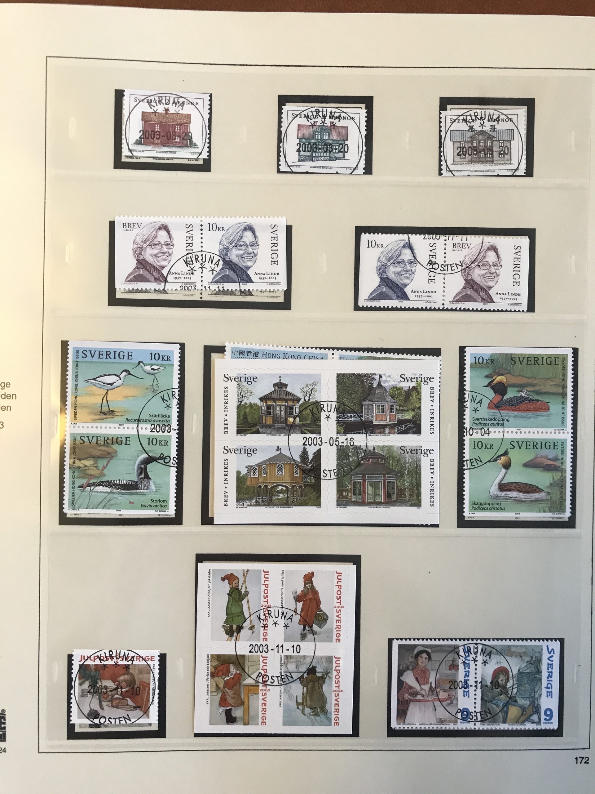 Sweden. Used. Collection 1858–2009 in six SAFE Dual albums with slip cases. Also one new empty stockbook, etc. Please see a selection of scans at www.philea.se. Approx. 23 kg.