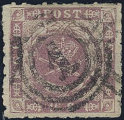 Denmark. Facit 10 used, 1863 Rouletted 16S lilac. Rich colour with normal irregular perforation. SEK 7000