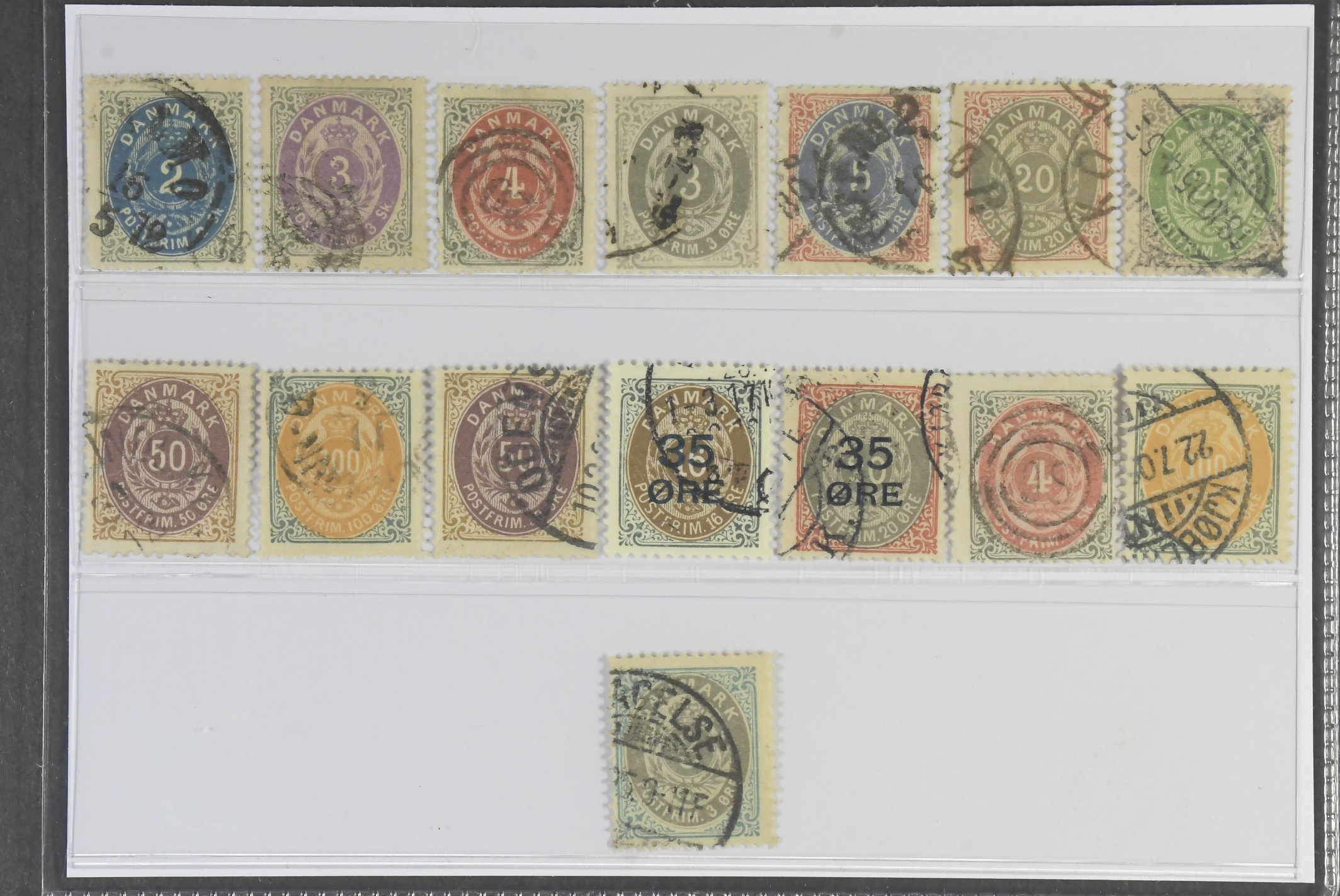 Denmark. Used 1870–1915. All different, e.g. F 20–21, 26, 28b, 30, 34–37, 44, 47–48. Mostly good quality. F SEK 7110 (15)