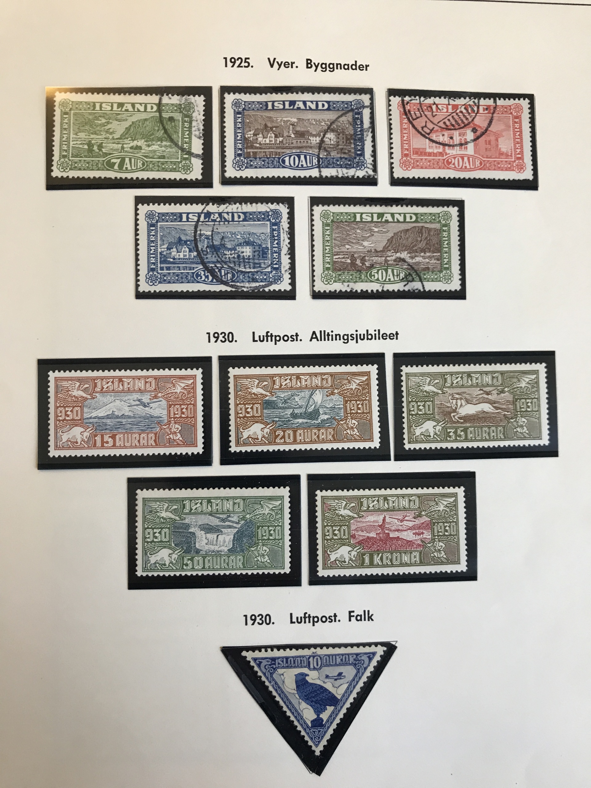 Iceland. ★★/★/⊙. Collection 1876–1957 in Facit album incl. nice aur-values and e.g. F124–56, 158–63, cpl. F168–321 mainly o/*, good official stamps, etc. Please see a selection of scans at www.philea.se.