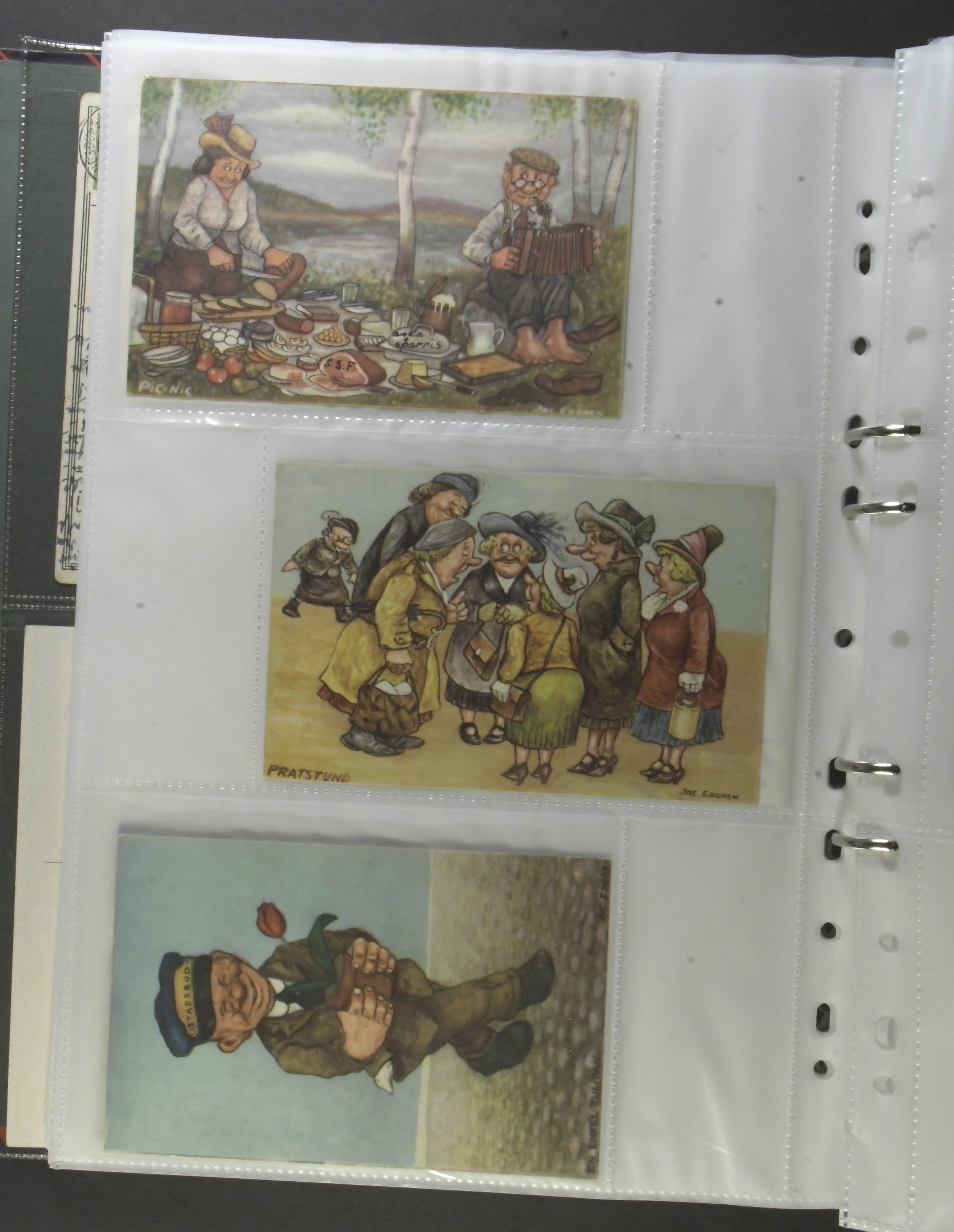 ALL WORLD. Picture postcards, accumulation 1900–1980s. Various topics in binder and two shoeboxes. About 50 % are old-size. Contains better old cards, e.g. an Swedish egg-shaped card. All appears to be different. Some pictures are presented at www.philea.se. Approx. 7 kg. (1700)