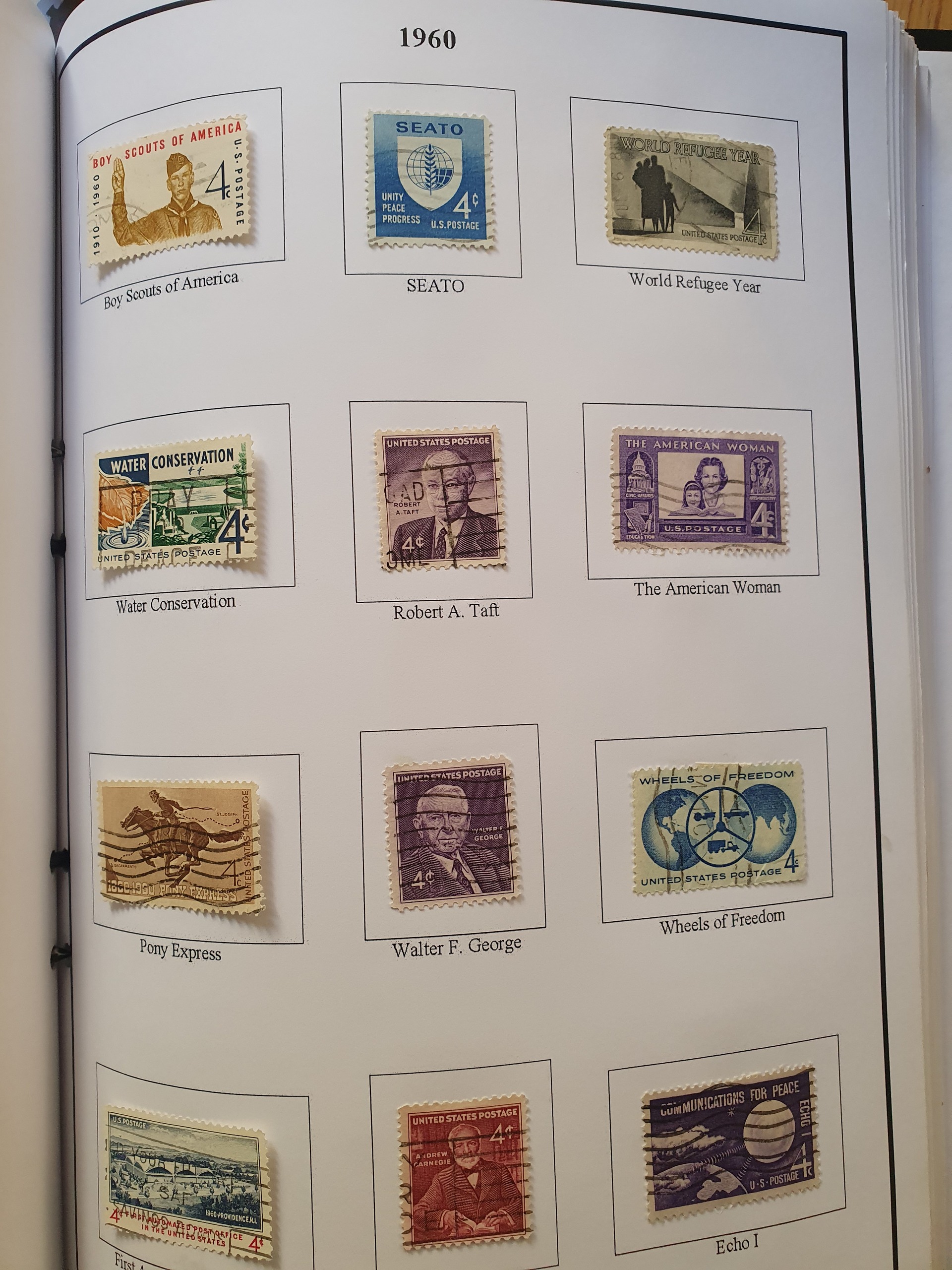 ALL WORLD, AMERICA. Collection/accumulation mostly used 1800s-1900s in box. In this five albums and a shoebox there are a god selection of American stamps. One album contains of pages that looks like they has been aimed for exibition. Please see a selection of scans at www.philea.se. Good quality. Approx. 6 kg.
