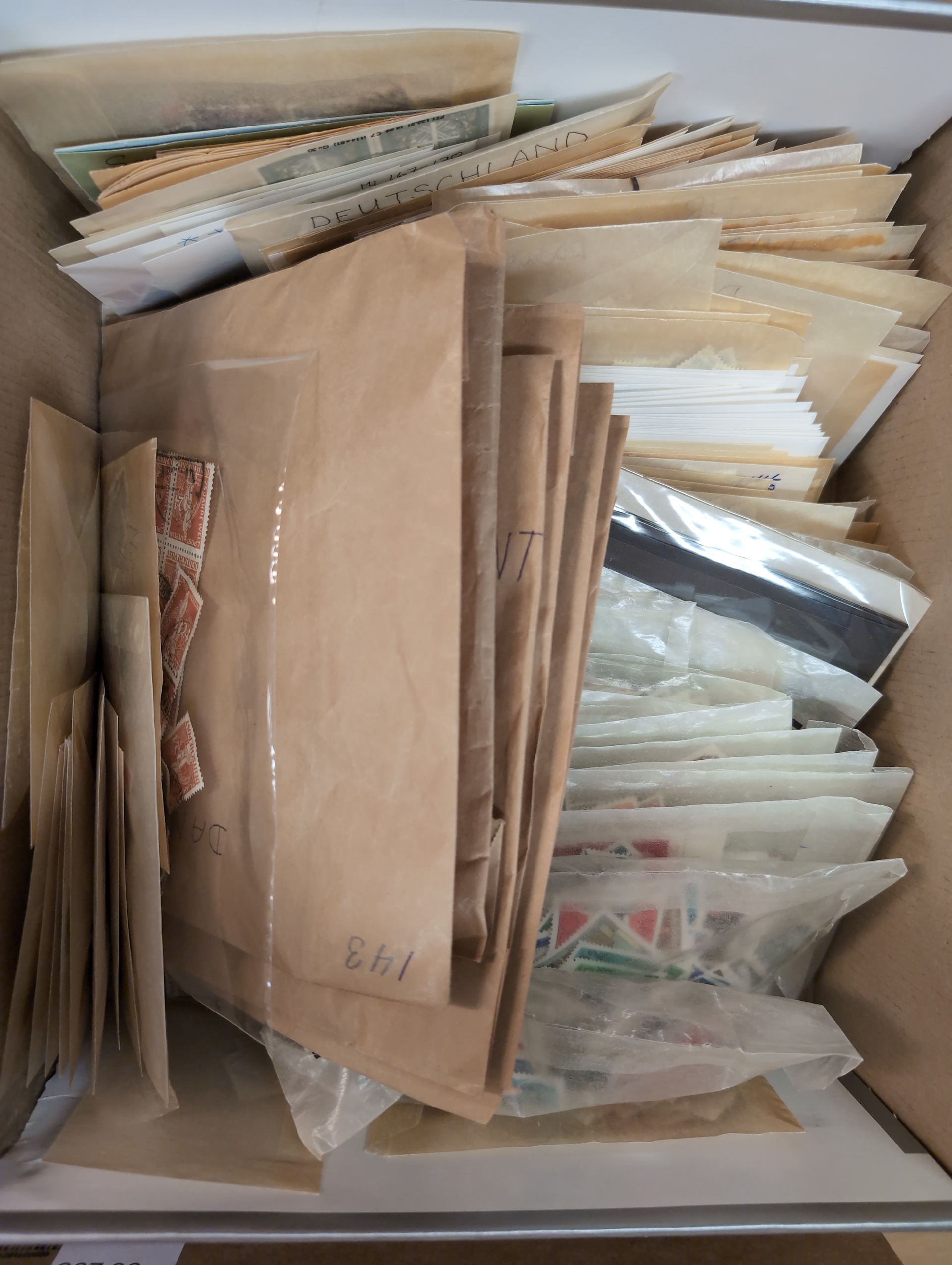 Germany, mixed. Accumulation ★★/★/⊙ 1872–1980 in box. Bargain box. Boxes, stockcards, etc. with stamps. Completely disorganized. Options for good combinations, varieties, plate flaws, etc. A lot Reich and GFR. Please inspect. Low reserve. Somewhat mixed quality. Approx. 6 kg. (10000s)