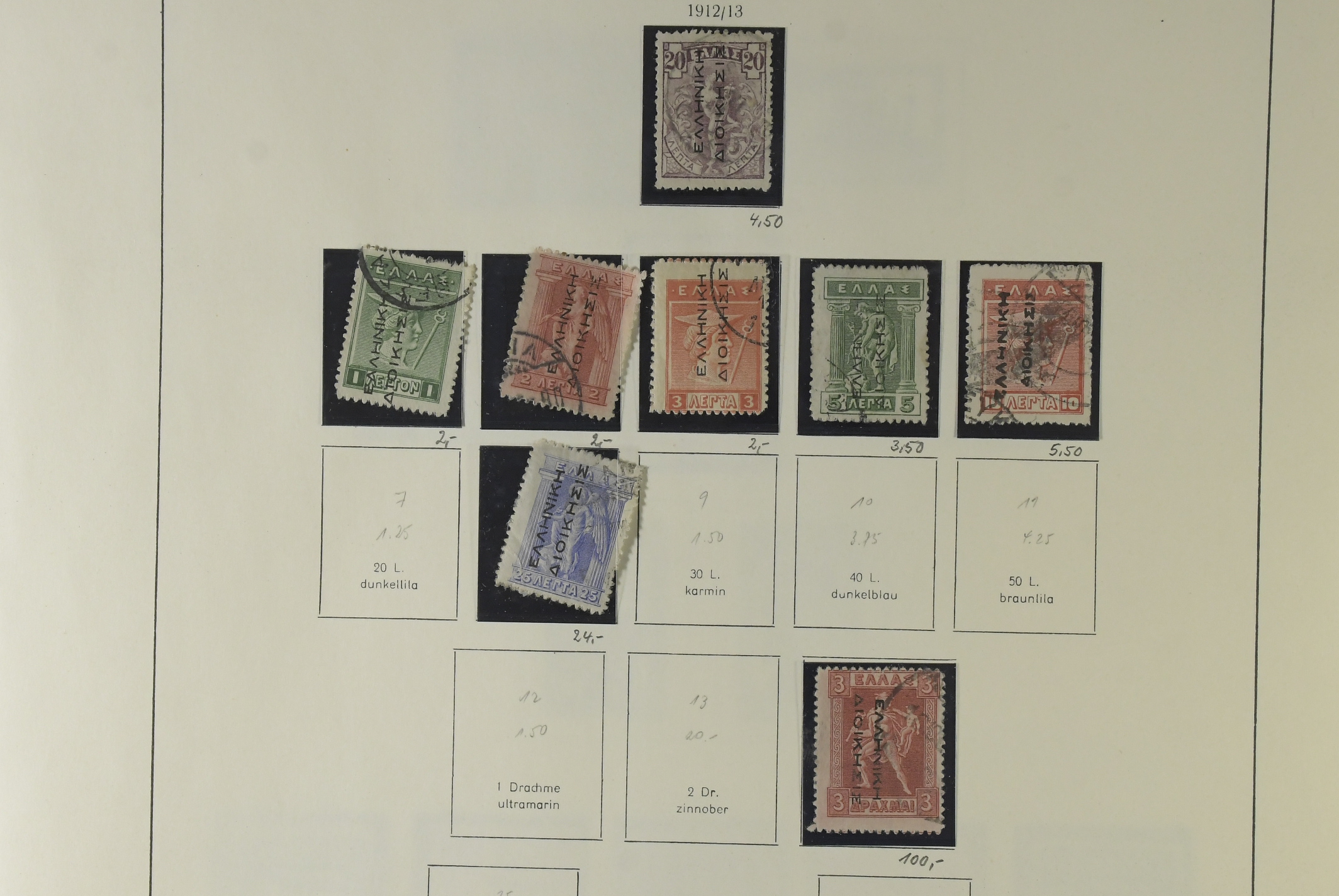 Greece. Mostly used. Useful collection of hundreds of stamps, all one of a kind housed in a KABE album from the large Hermes heads imperfs, different printings through small Hermes heads both perf and imperf, through to a comprehensive range of 20th century, mostly used, including key sets in the airmails, plus 1930s to 50dr, through to the 1970s virtually complete post WWII, ending with Occupation issues and back of the book. Completely uncatalogued, a recommended viewing.