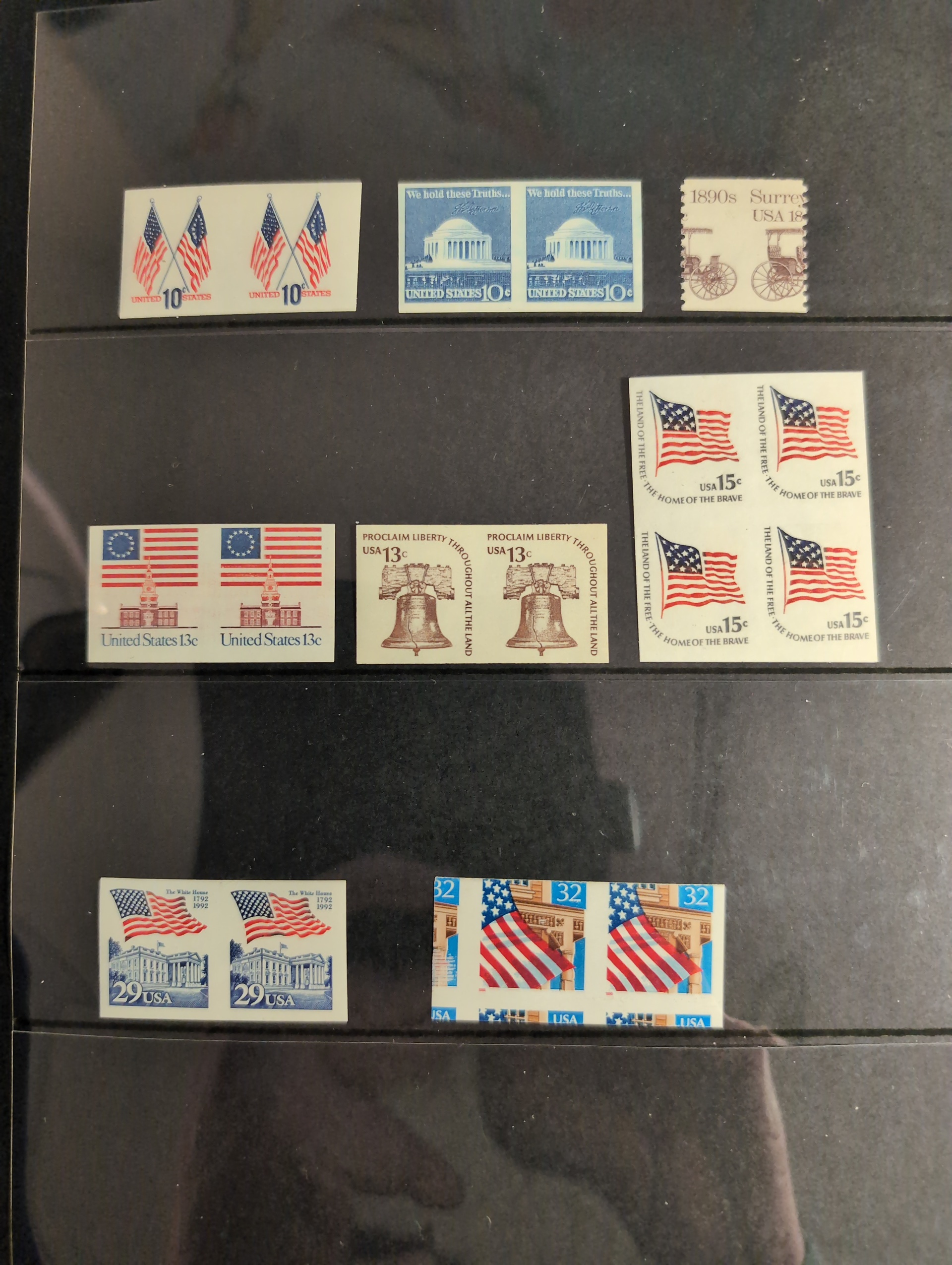 U.S.A. Collection/accumulation ★★ 1970s–2000s in two visir albums. Incl. some Souvenir Sheets and high denominations and one page with impreforated pairs. Face value ca $340+. Excellent quality. (600–700)