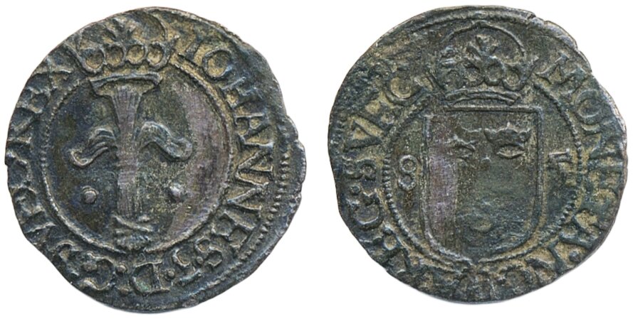 Coins, Sweden. Johan III, SM 122, 1 fyrk 1585. 1.01 g. Stockholm. 1+.