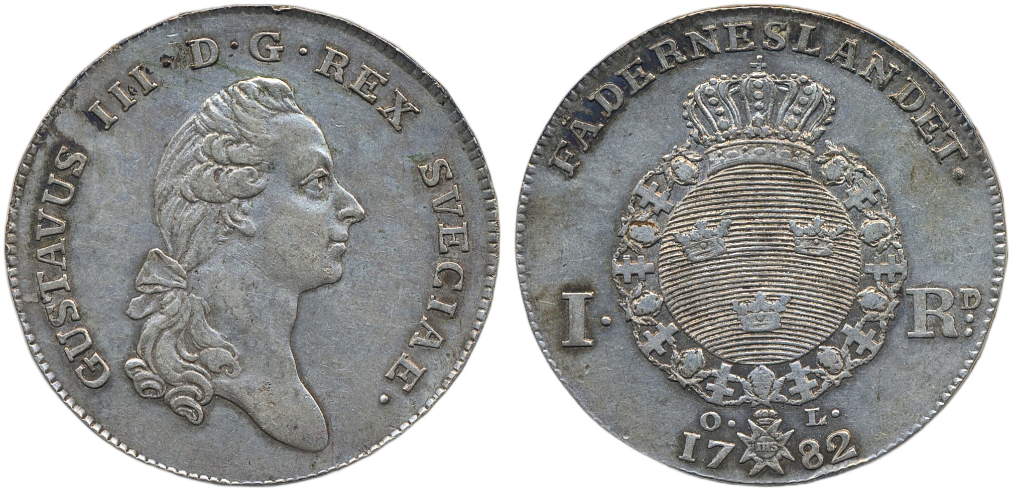 Coins, Sweden. Gustav III, SM 48, 1 riksdaler 1782. 28.97 g. Stockholm. 1+.