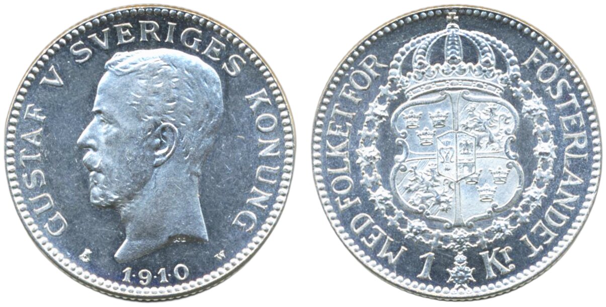 Coins, Sweden. Gustav V, SM 35, 1 krona 1910. 01/0.