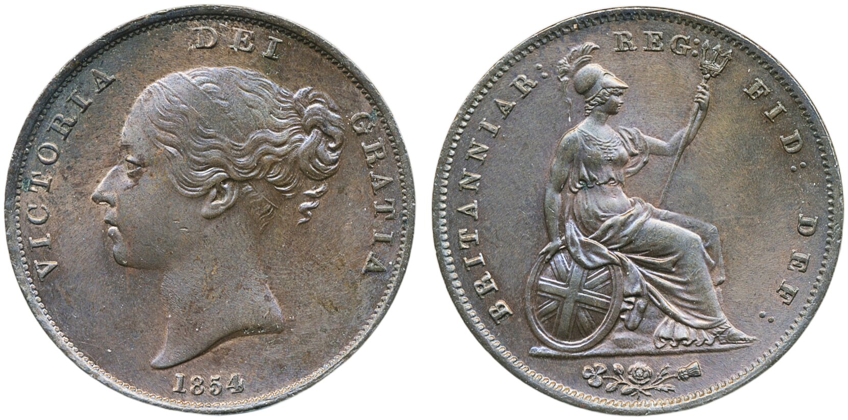 Coins, England. Victoria, KM 739, 1 penny 1854. 18.80 g. XF-UNC.
