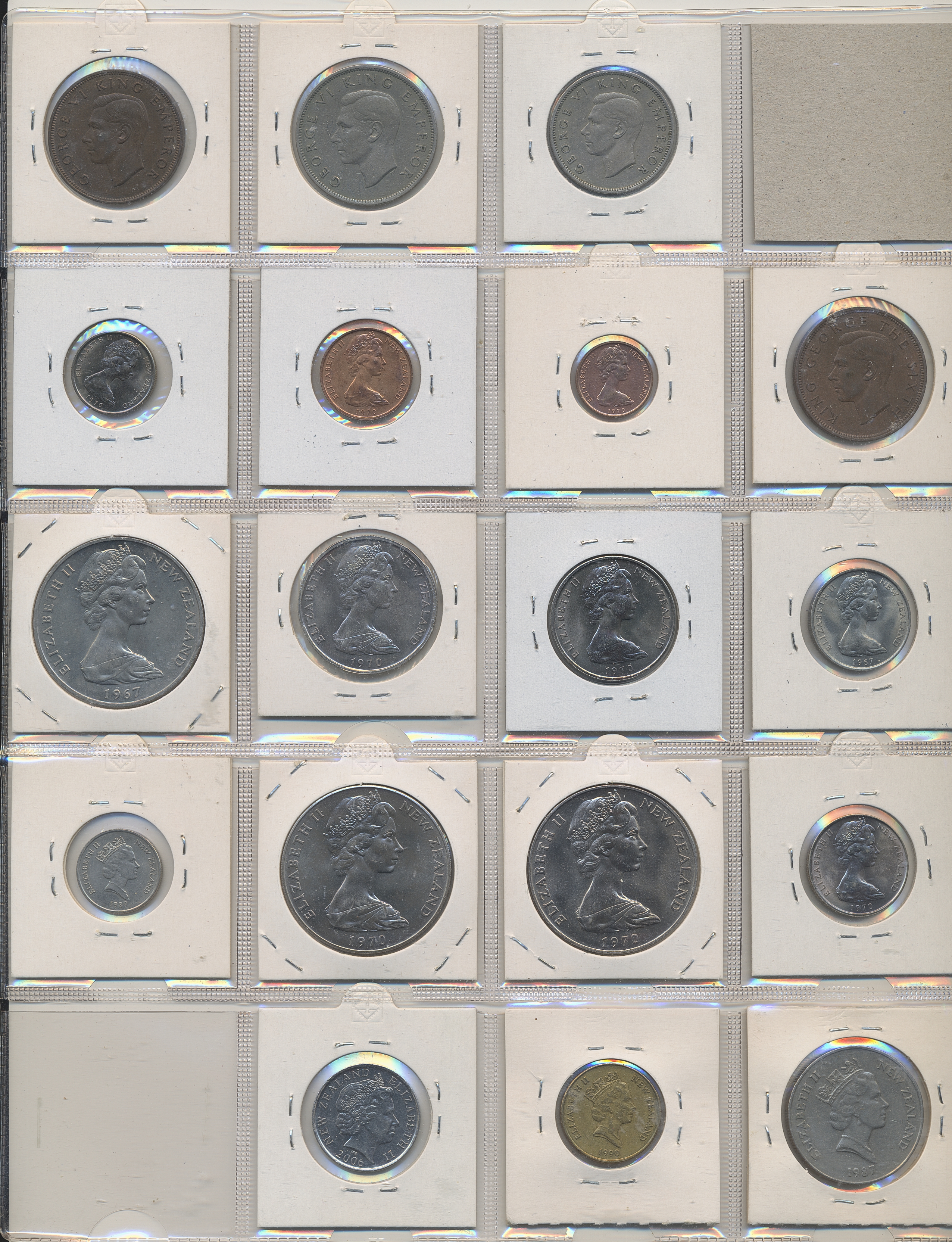 Coins, ALL WORLD. Collection in album including: New Zealand, Nepal, Nigeria. In total 69 pcs. Please Inspect!