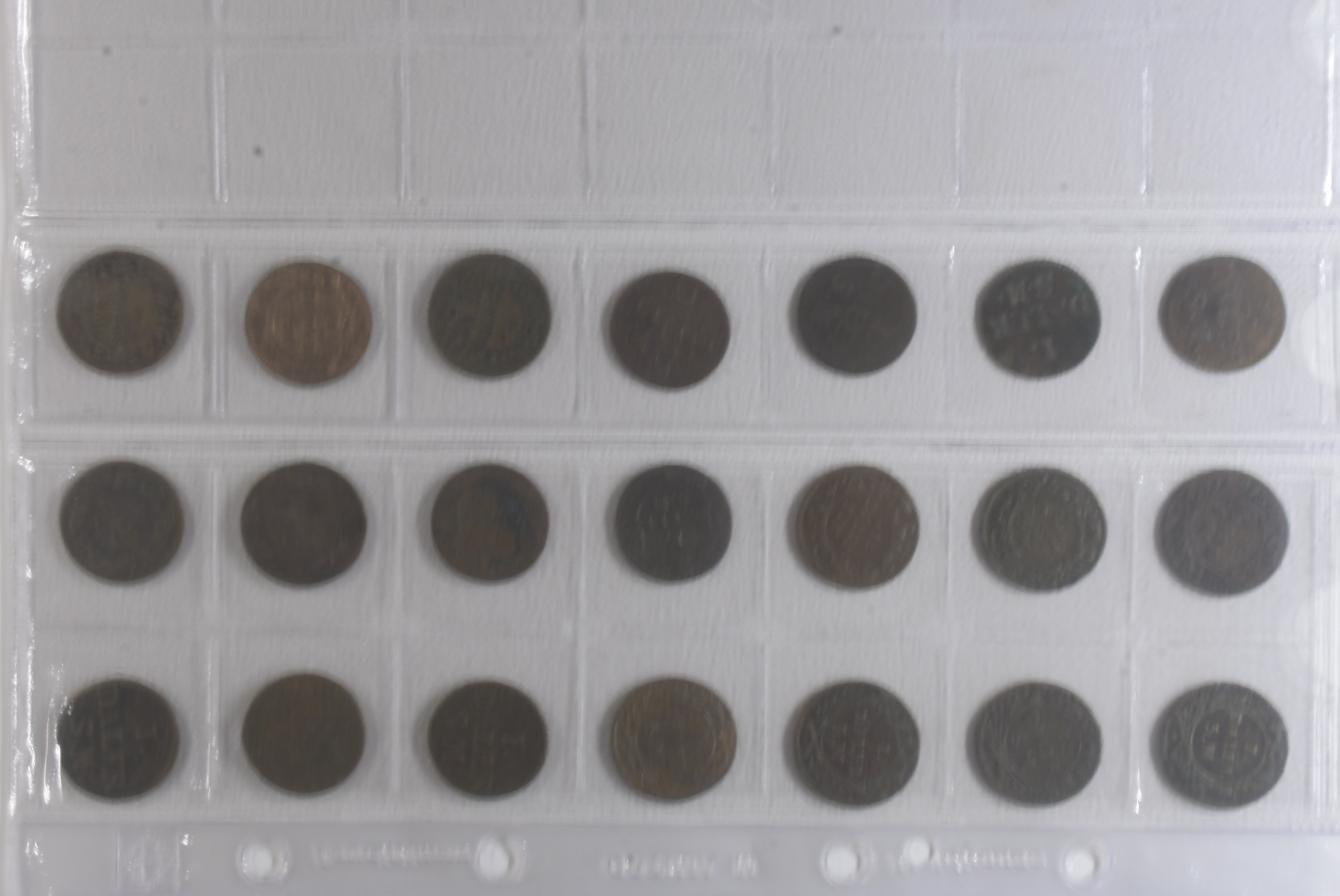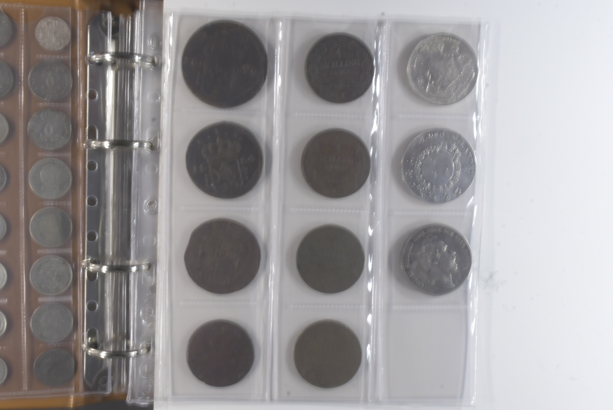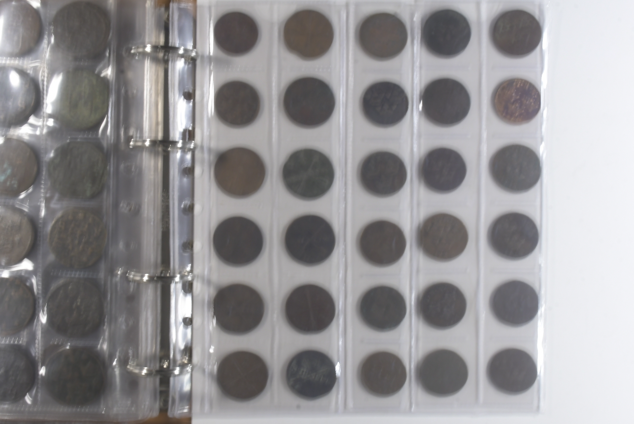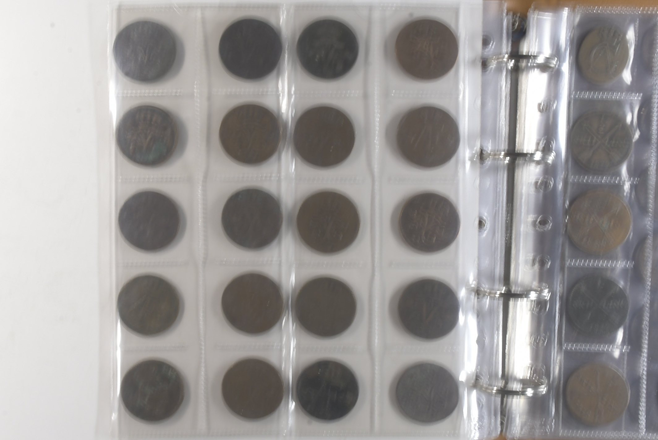 Coins, Sweden. Large collection of silver and copper coins including large size early coppers, over 20 pcs Karl XII emergency coins, pierced (repaired) riksdaler 1772, mounted riksdaler species 1851, etc. In total 227 coins. Please inspect! 1?-01.