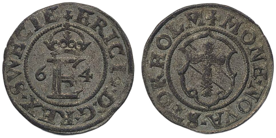 Coins, Sweden. Erik XIV, SM 38, 1/2 öre 1564. 1.56 g. Stockholm. Beautiful lustrous example. 01.
