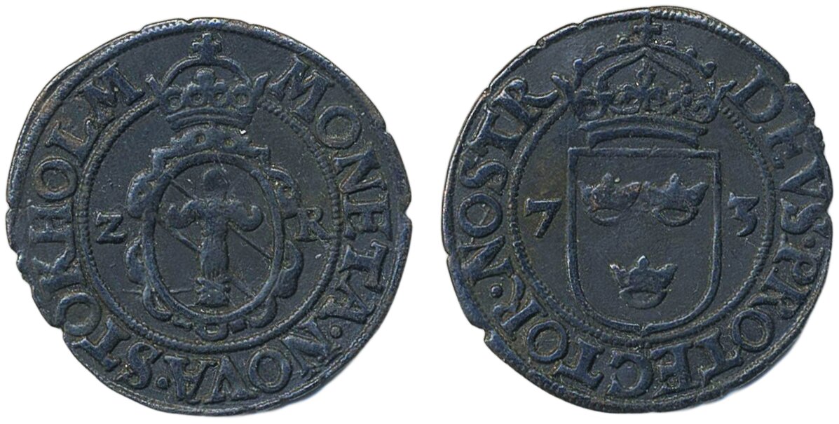 Coins, Sweden. Johan III, SM 75b, 2 öre 1573. 3.06 g. Stockholm. Lev. 356. 1+.