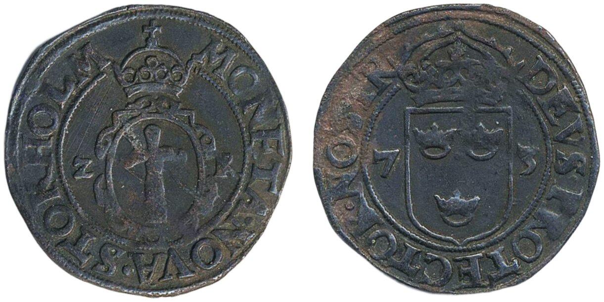 Coins, Sweden. Johan III, SM 75b, 2 öre 1573. 2.54 g. Stockholm. Minor rust on reverse. Lev. 356a. 1+.
