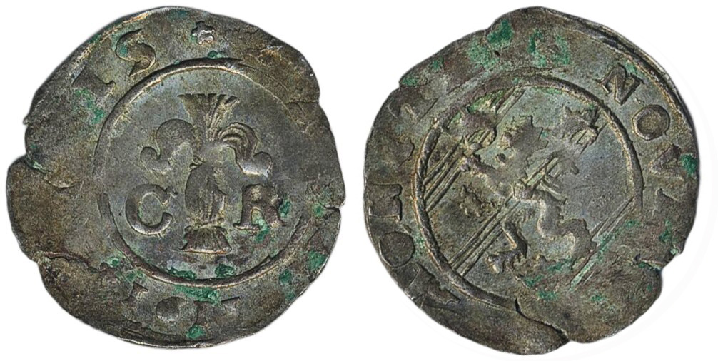 Coins, Sweden. Karl IX, SM 77a, 1 öre 1611. 1.48 g. Stockholm. Lustrous example with some verdigris. 1+/01.