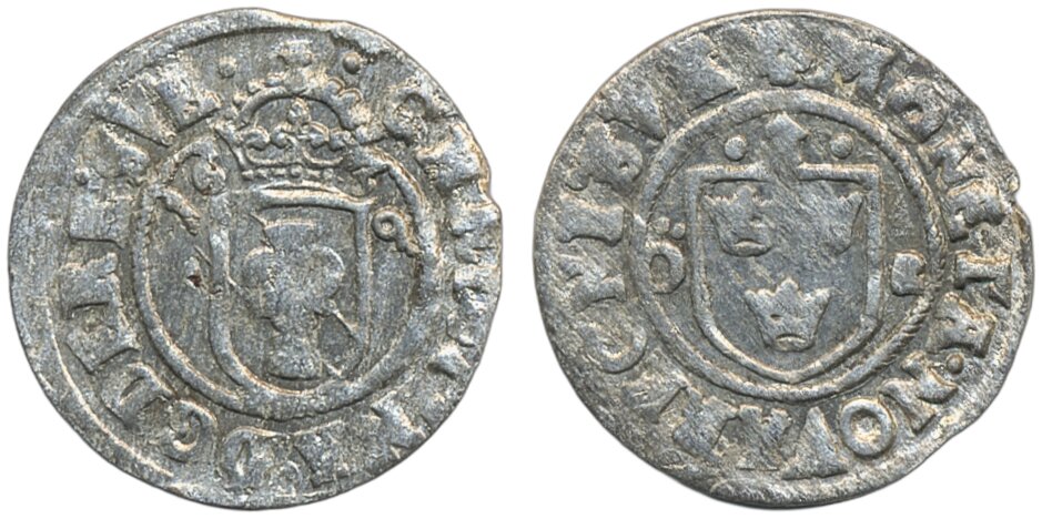 Coins, Sweden. Kristina, SM 87, 1 öre 1636. 0.99 g. Stockholm. Lustrous example, partly weakly struck. 1+.