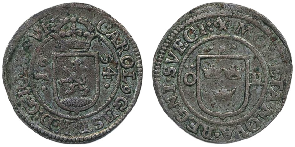 Coins, Sweden. Karl X Gustav, SM 27a, 1 öre 1654. 1.10 g. Stockholm. Ex MISAB 4 lot 960. 1+.