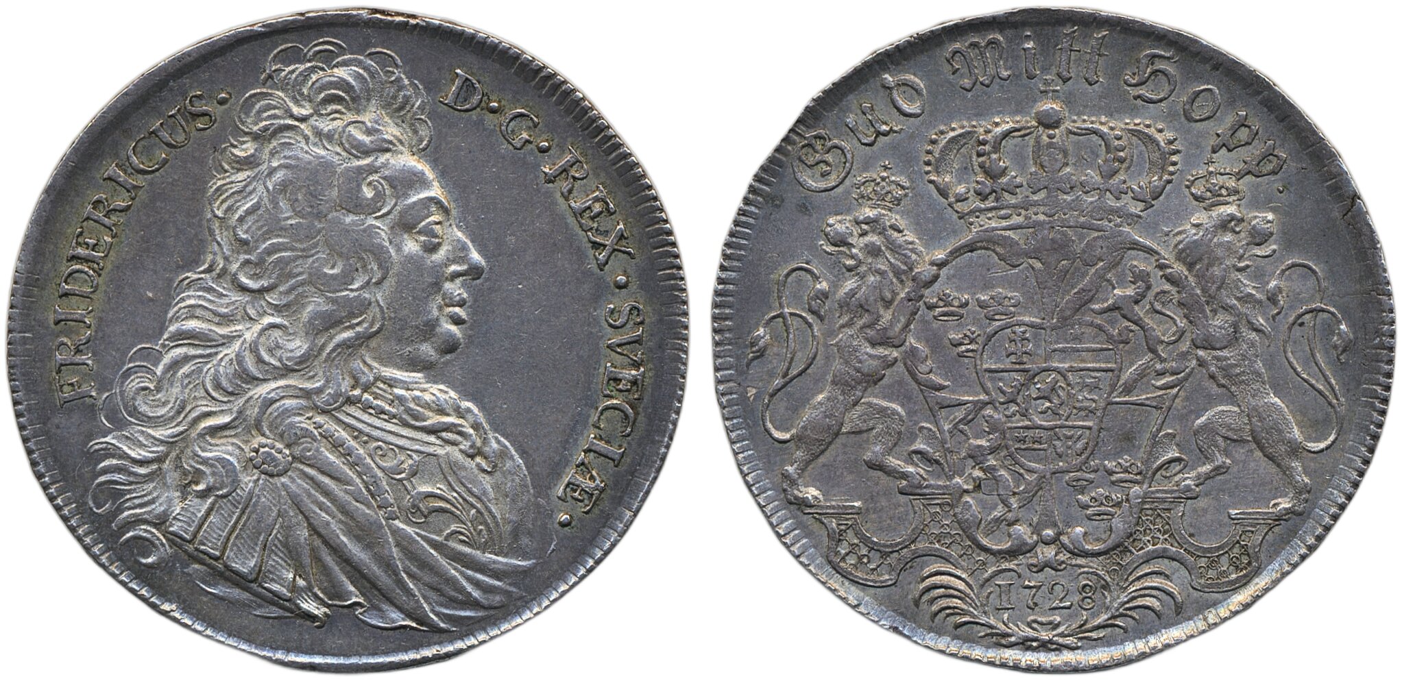 Coins, Sweden. Fredrik I, SM 68, 1 riksdaler 1728. 29.01 g. Stockholm. With beautiful patina. 01.